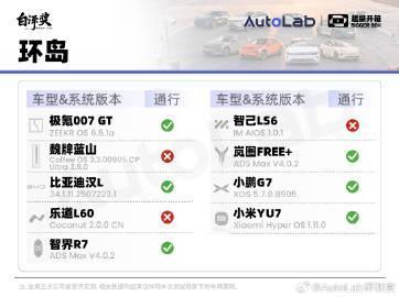 上海五角场环岛设有红绿灯,地面标线相对复杂,车流量也比较大。 这里考验车辆在弯道中的多车动态博弈、红绿灯识别能力以及路口通行能力。 城区领航刚上车的时候,基本无法在环岛使用,而现在绝大部分品牌都可以成熟应对。 这次测试的9车中,有6车可以通过。 智己LS6和魏牌蓝山稍微有些可惜,这两台车支持环岛通行,但是进入环岛以后路径规划出了一些问题,错过了出口。 只有乐道L60是在进入环岛之前降级,系统显示领航功能不支持这种路况。