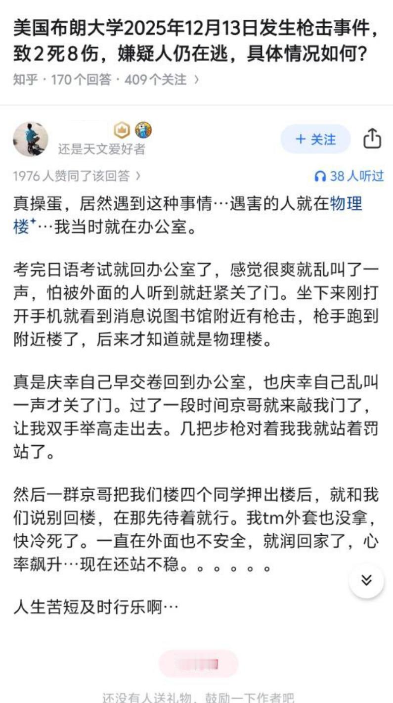 🔻资本主义教育人啊。热点现场海外新鲜事美国布朗大学发生校园枪击