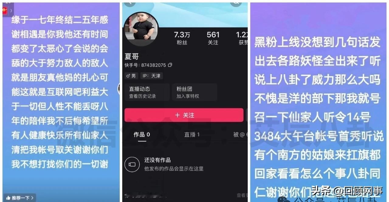 “仙家”大哥挑理闹退网,醋王被扎心连麦对话! “仙家”一位刷客夏哥不满娜美扛旗,清空所有作品闹退网!在与另一位“刷客”秋哥连麦抱怨时,仙洋加入连麦做解释说明。 夏哥坦言加入仙家唯一的心结是娜美触碰到底线,宣布消息的一刹那就绷不住了!仙洋被“夏哥”发的作品扎心(见下图),若换做黑粉不予理会,若是哪个网红敢黑我就直接摁si! 连麦中的秋哥提醒仙洋以后找对象别在网络公开,除非板上钉钉展示结婚证!在仙洋的“反向操作”哄说下,夏哥打开心结消气了!