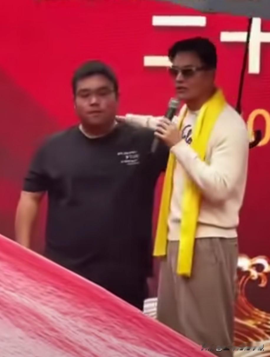 吕良伟带儿子吕善扬回老家祭祖,父子同框,儿子始终为老爸撑伞,开始还以为是工作人员,儿子吕善扬穿的朴素,其貌不扬,和吕良伟一点也不像,身材又肥又壮,感觉比老爸还要老,只到吕良伟介绍后才知道,原来撑伞的是他儿子。