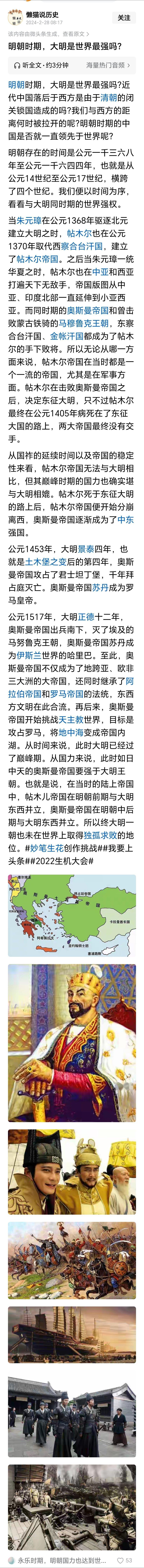 游水的叶子 2 2025-12-15 10:34 版图是最大的,人口也是最多的,但在学术方面就不好比了。 记忆跟铁轨一样长 回复 12-15 12:29 你确定版图最大?明朝很多时候都只有400万平方公里左右,同期的奥斯曼土耳其有500万左右,北元甚至也有400多万,铁木儿帝国也有400多万 游水的叶子 回复 记忆跟铁轨一样长 12-15 16:00 别忘了,辽东很多地方还是臣服于明朝的,算上那里,就可以达到当时做大了,我们肯定不能把奴儿干都司忘了,虽然基本上没有人去了