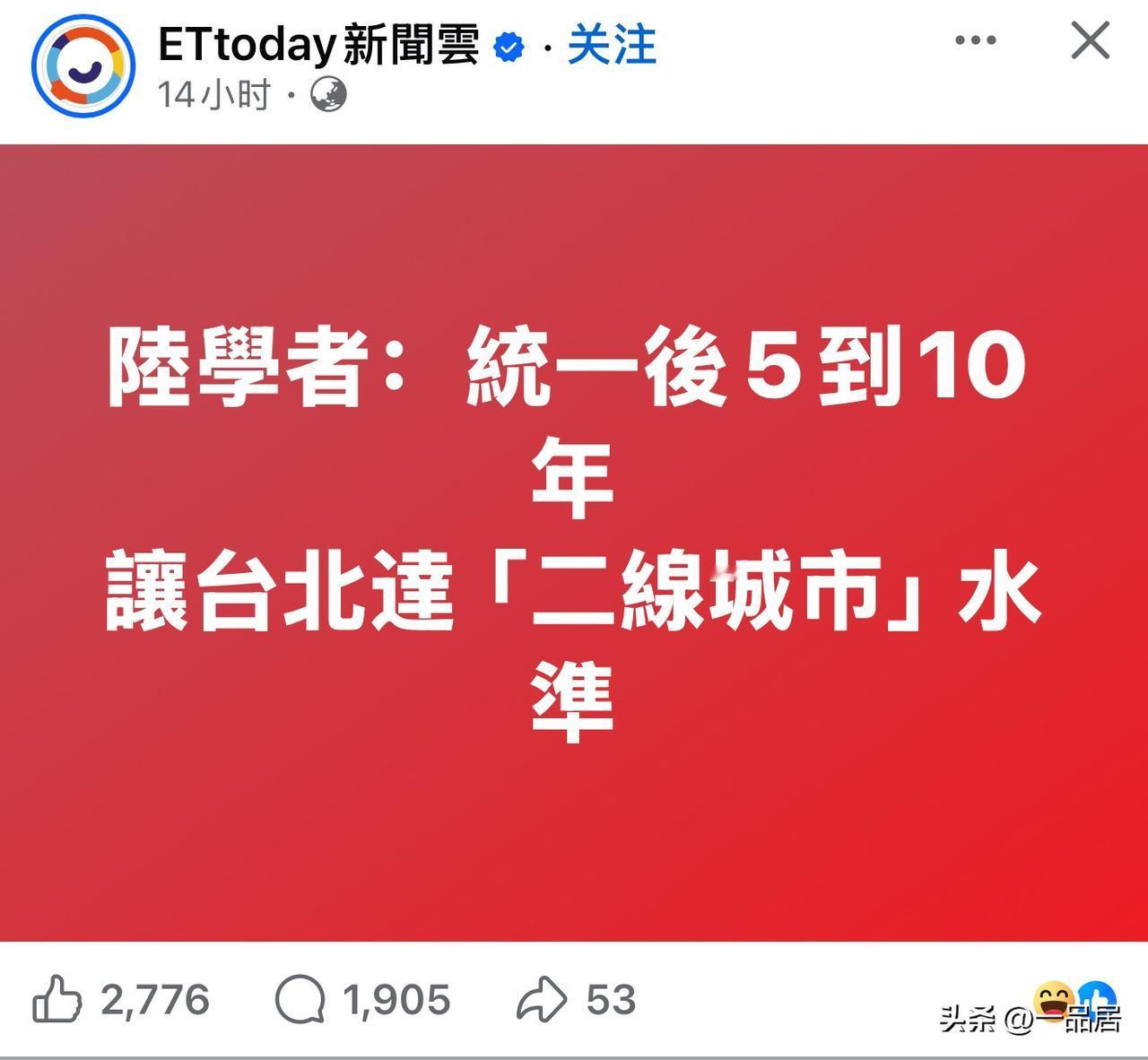 统一台湾,这是民心所向,这是历史的发展趋势潮流,任何人,任何势力都无法阻挡我们!两岸同胞的血脉亲情!统一以后,台北将会发展得更好,这是必然的。共同享受中华民族伟大复兴的成果。