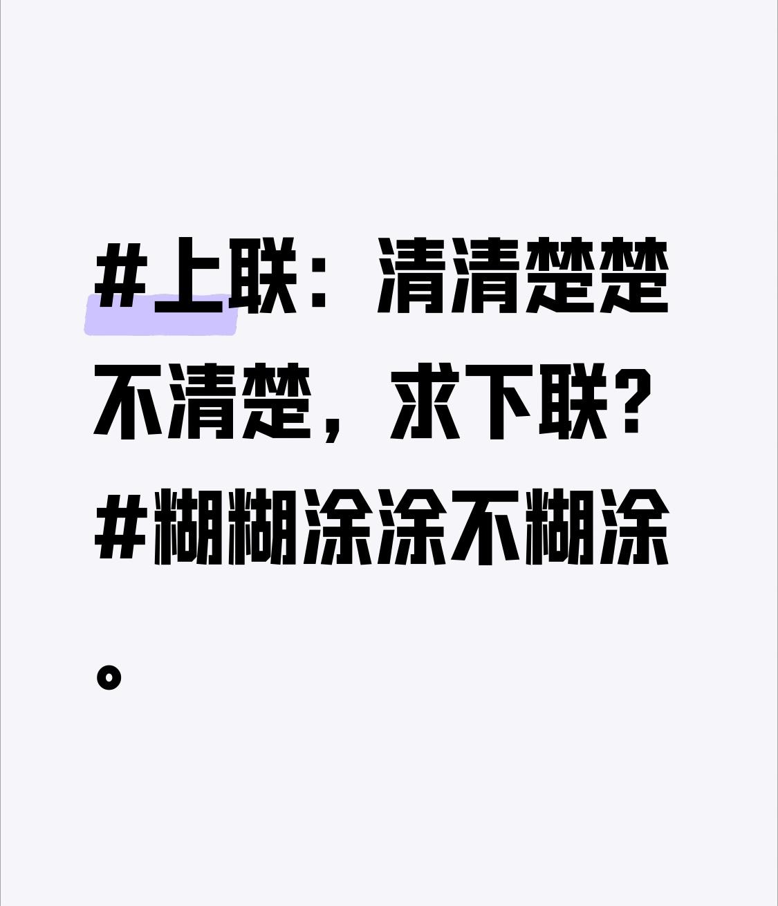 上联:清清楚楚不清楚,求下联?糊糊涂涂不糊涂。