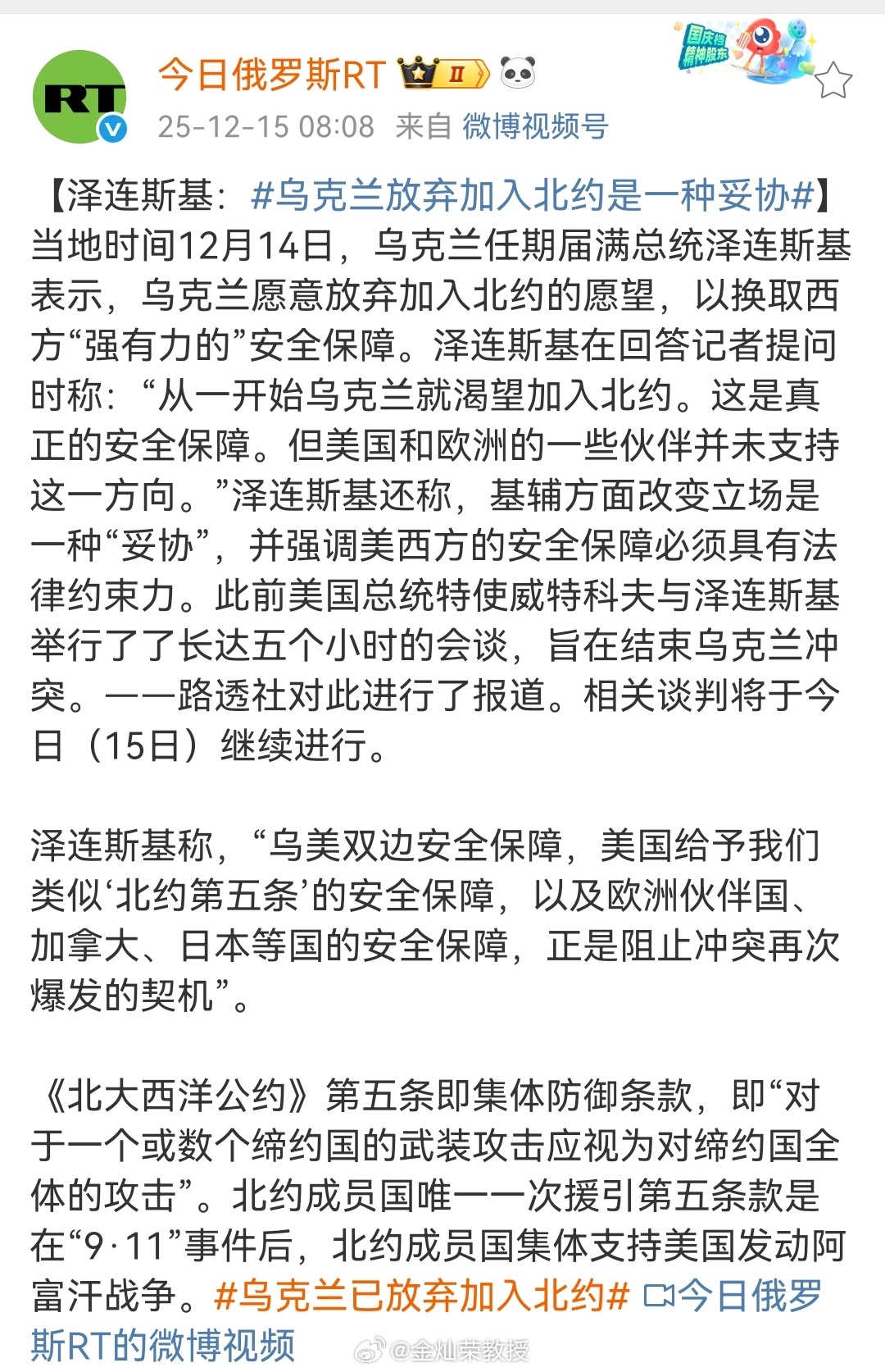 让美国提供类北约第五条的可能性不是很大。老特的想法是给点空中和情报支持意思一下。