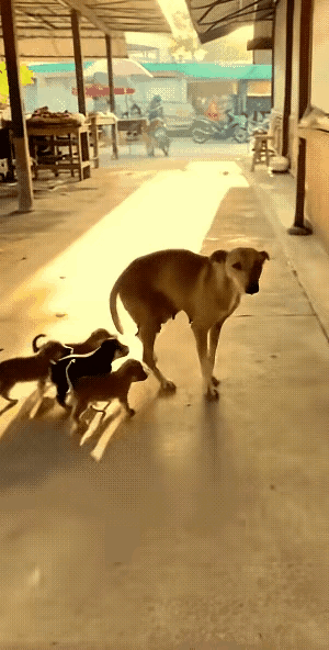 看到这只流浪狗妈妈,为了哺育幼崽,每日都到这位好心人家中讨食。目睹此景,我们深受触动,画面中满是母爱、爱心与善良。