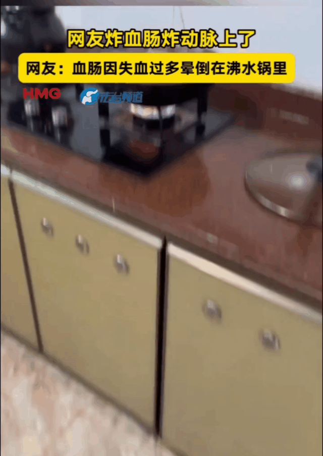 炸血肠,炸到动脉了,吓死人了!