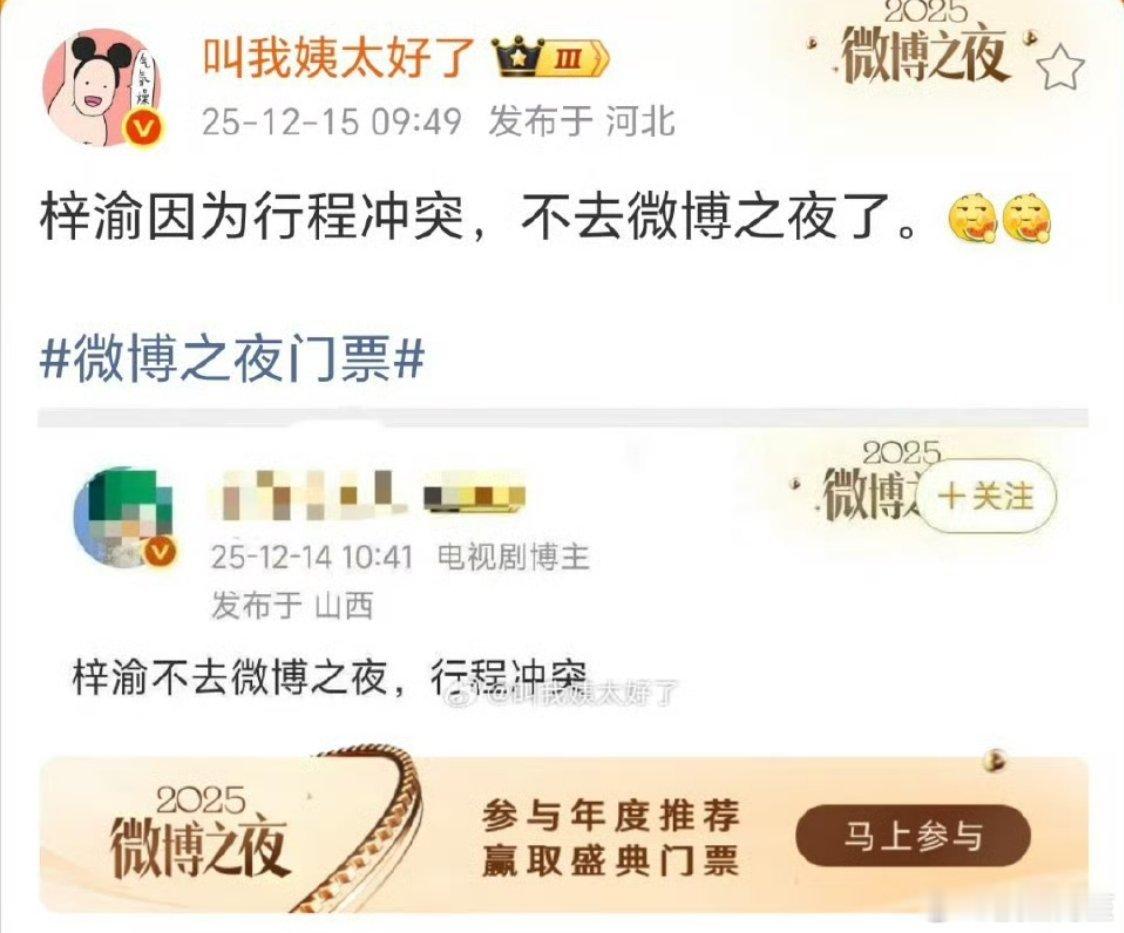 梓渝不去微博之夜,到底是微博之夜没邀请还是给的位置不好呢