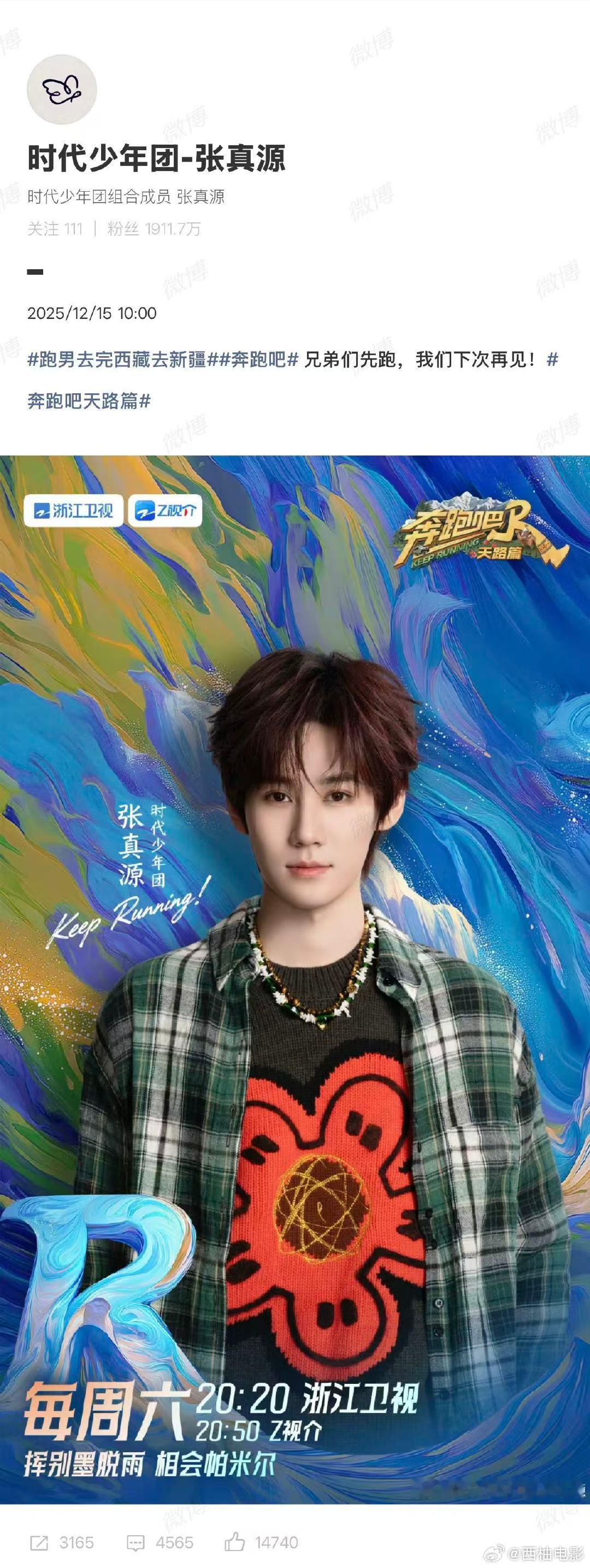 张真源奔跑吧天路篇收官张真源奔跑吧天路篇收官发文 12月15日,《奔跑吧·天路篇》收官发文:“兄弟们先跑,我们下次再见!”