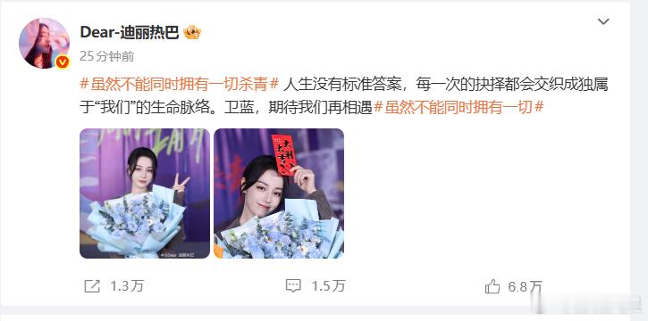 《虽然不能同时拥有一切》杀青引发热议,迪丽热巴回应中流露对作品的期待,一人分饰两角的体验丰富表演维度。迪丽热巴回应新剧杀青迪丽热巴回应虽然不能同时拥有一切杀青