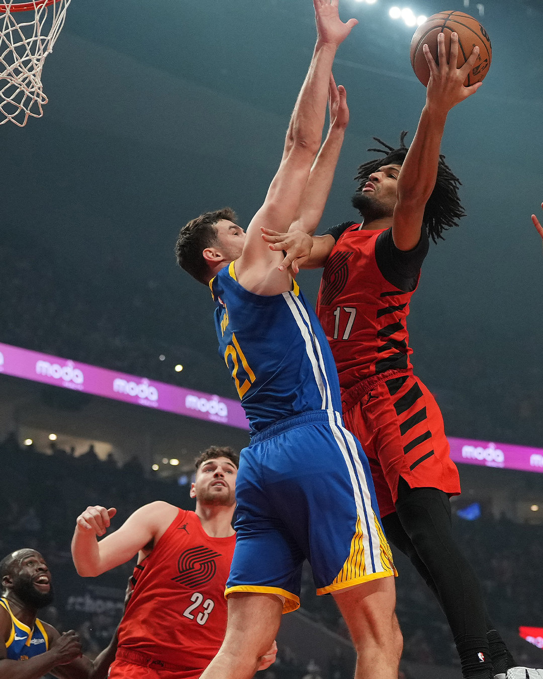 波齐姆斯基12分,7篮板,6助攻,1抢断。勇士vs开拓者