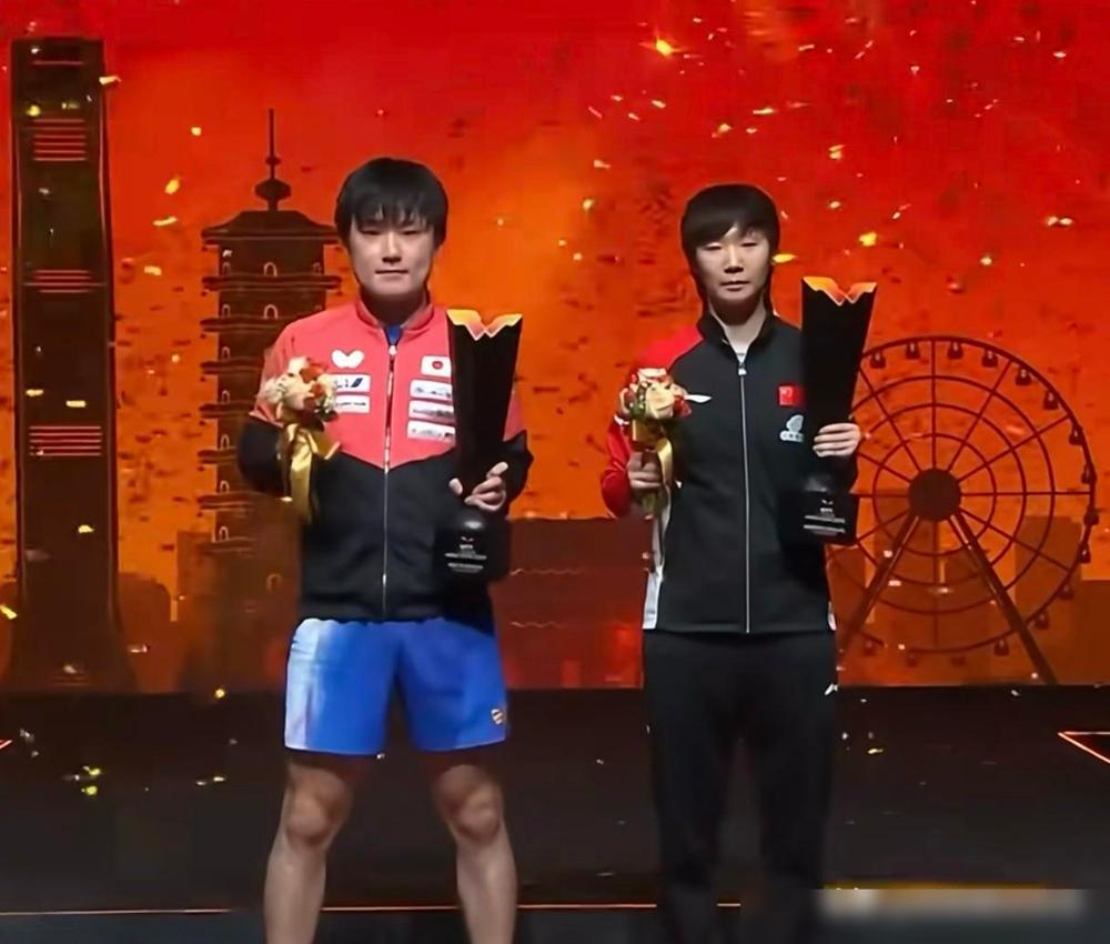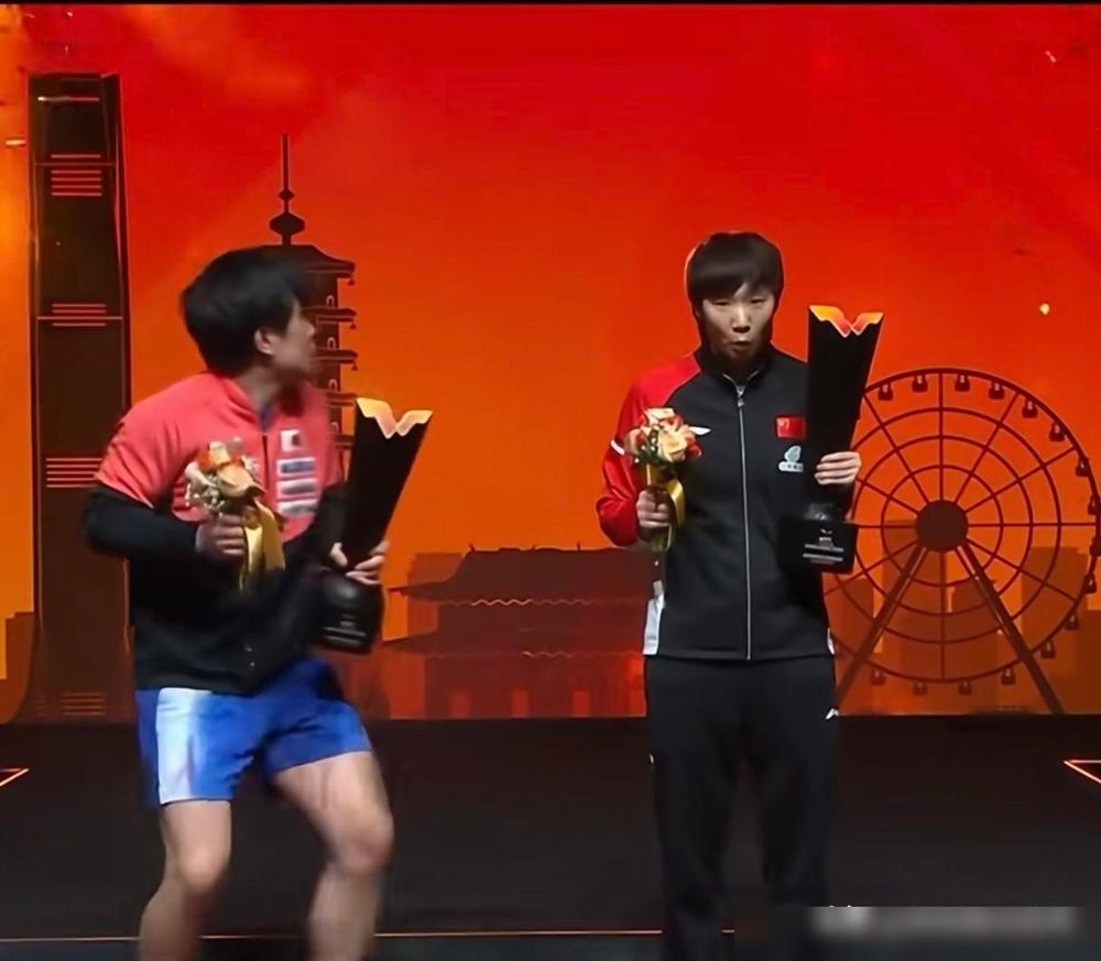 能被张本智和笑死,WTT香港总决赛男单女单冠军合影,张本智和拿着奖杯和捧花走了过来,只见他先把手里的捧花放一边,举着奖杯和王曼昱站一起合影,他这个时候他发现捧花也要拿,于是乎过去又把捧花拿了回来,又和王曼昱站一起准备合影了 ,这个时候礼花响起来了,张本智和被吓得回头张望,本来我们的曼昱还一脸镇定呢,结果被张本智和给吓了一跳,张本知道你是第一次拿总决赛冠军,业务还不熟练,但是你不能总这么一惊一乍的,吓到我们曼昱了。 简单复盘一下,就是WTT香港总决赛结束后的冠军合影环节,男单女单冠军一起站台,结果张本智和贡献了一段“社交恐慌式操作”。 先是奖杯和捧花到底要不要同时拿,来回切换好几次,像极了第一次上台领奖不知道手该往哪放的人。 我更在意的是他整个人的紧绷感,明明是冠军时刻,却全程小心翼翼,生怕哪里没配合好,反而更容易出小状况。 然后礼花一响直接回头那一下,真的太真实了,那种被突然声音吓到的反射动作,隔着屏幕都能感受到。 最好笑的是连王曼昱都被带着吓了一跳,本来稳得不行,结果被他一惊一乍成功“传染”。 说实话,这种画面反而挺加分的,不是那种流程走到麻木的合影,而是有点手忙脚乱的人味。 也提醒一句,第一次拿大场面冠军紧张很正常,但下次真的可以提前练练合影流程,不然礼花还没炸完,人已经先炸了。