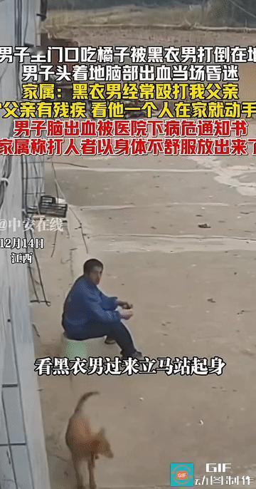 “这黑衣男子太坏了!”江西,一名残疾男子,坐在自家门口吃橘子时,竟无故遭一名黑衣男子暴力袭击,被打倒在地后头部着地,当场昏迷,导致脑出血病危。更令人难以接受的是,据家属反映,行凶者竟以“身体不舒服”为由已被释放! 来源:【中安在线】 事发时,男子正坐在自家门口吃橘子,这原本是生活中最寻常不过的平静片段。然而,这份平静被一名黑衣男子的到来彻底粉碎! 监控显示,男子看到黑衣男子过来,立即起身与其打招呼,没想到的是黑衣男子上来不由分说的就给了男子一拳,袭击来得突然且凶狠,男子被打倒在地,头部重重撞击地面! 对于一名本已身患残疾、行动与反应能力可能都弱于常人的受害者而言,这样的暴力冲击无疑是毁灭性的! 更气愤的是,黑衣男见男子倒地后,竟然直接转身离开了,直到4分钟后,他再次返回时,发现男子依然倒在地上,他这才察觉到不对劲! 只见他将男子暴力拽起后,发现地面有血渍,这才拿出手机准备打电话叫救护车! 而此时紧随其后过来了的一名老太太发现后,竟然不让男子打电话,要拉着他离开,幸好黑衣男没有彻底丧失理智,还是知道人命关天,最后没有听从老太太的劝阻,拨打了急救电话! 事后,其家属悲愤地表示:“黑衣男经常殴打我父亲,父亲有残疾,看他一个人在家就动手。” 然而,事件的后续发展,让这场悲剧蒙上了更深的阴影。受害男子因暴力导致脑出血,情况危急,医院已下达病危通知书。就在家属为亲人的生命安危揪心之际,却得知施暴者已被释放,理由是其“身体不舒服”! 这一信息形成了刺眼的对比与巨大的张力: · 受害者处境:生命垂危,躺在ICU与死神搏斗。 · 施暴者状态:以“身体不适”为由,已恢复自由。 这种处理方式,无疑是对受害者家属情感的二次伤害,也在挑战公众对司法公正的朴素认知。虽然法律程序中有取保候审等规定,必须基于专业的医学和法律判断,但将“身体不适”作为关键理由,在面对“脑出血病危”的严重后果时,显得格外苍白和失衡! 一个社会的文明程度,恰恰体现在它如何对待最弱势的成员! 我们期待,对本案的调查与处理能严格依法进行,给生命垂危的受害者及其家属一个严肃的交代! 更重要的是,希望这场以“一个橘子”为苦涩开端的教训,能真正推动制度与行动的完善,让每一位公民,无论其健康与否、强大与否,都能在自己家的门口,安心地享受阳光,而不必担心突降的拳脚! 正义或许有时会显得步履蹒跚,但它必须朝着正确的方向,坚定地走来!