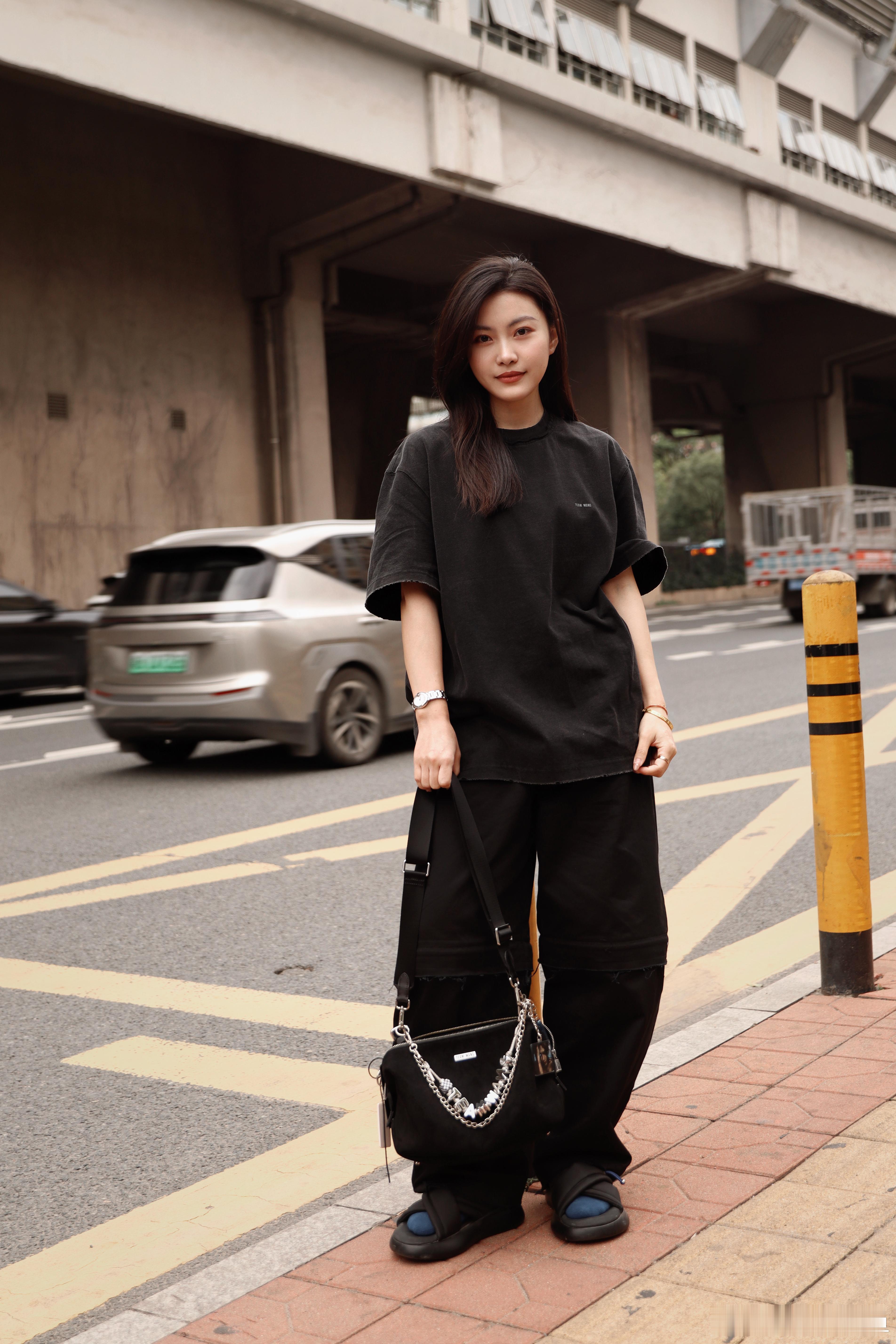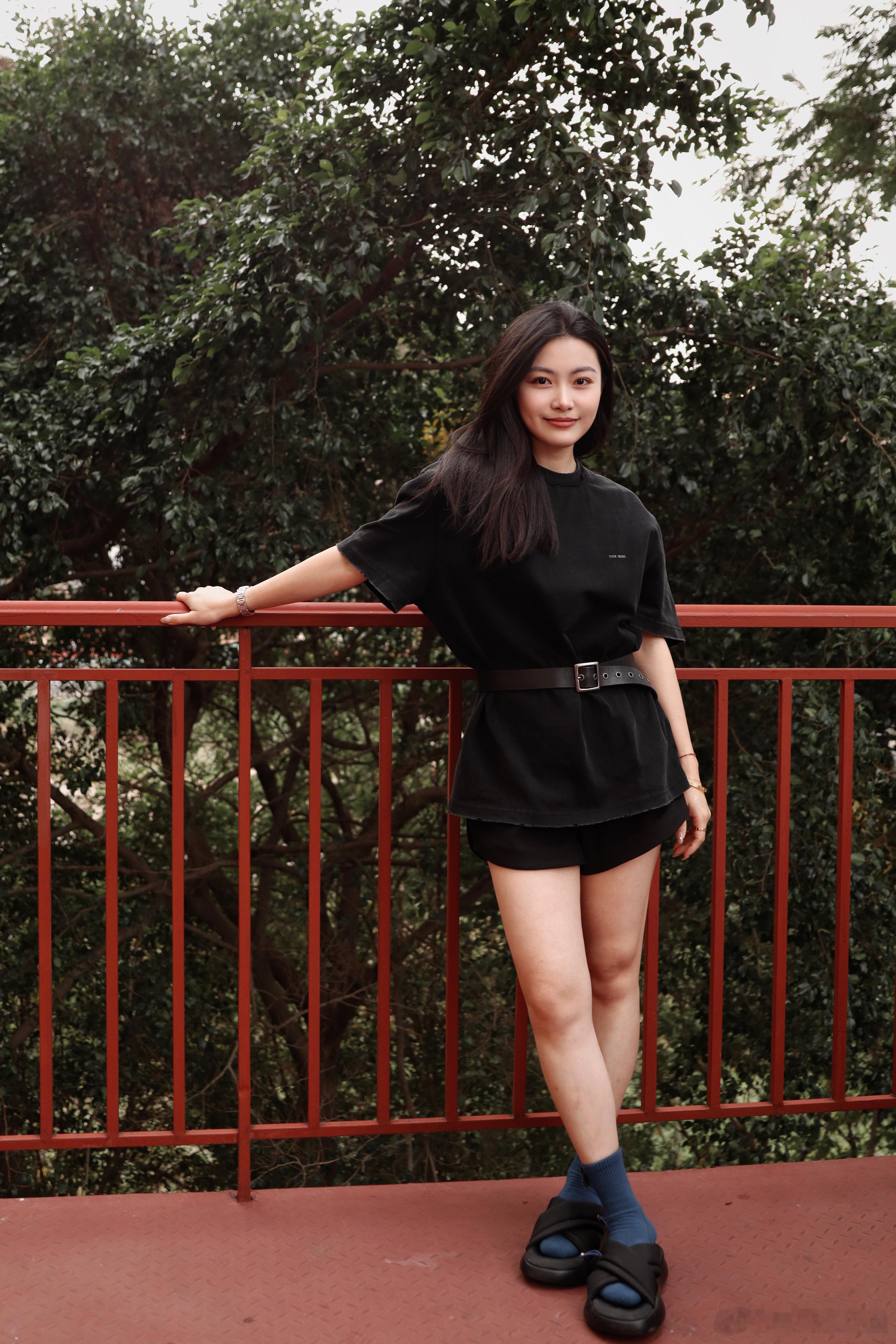 吴艳妮在成都穿着短裤大腿看起来很粗壮,表情自信又张扬