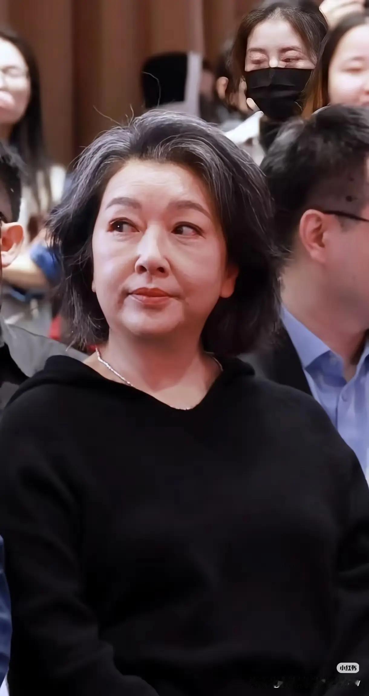 57岁的江珊很真实的状态,白发,皱纹,毫不掩饰。