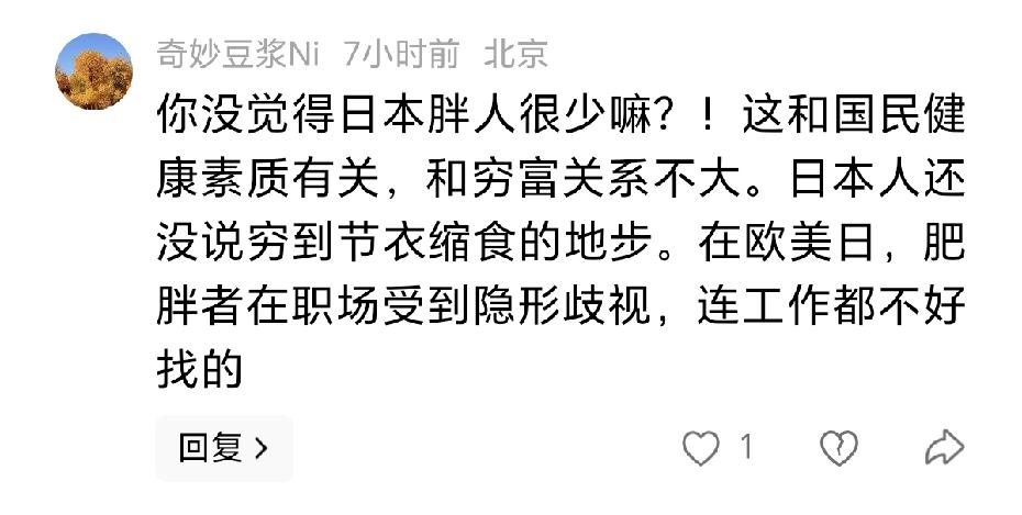 日本250日元的快餐。和我们中国快餐相比如何? 马上就有人出来给日本站台,知道日本人为什么胖子少吗?这和国民健康素质有关,和贫富关系不大。 我还就真不相信了,但凡是个人,能吃好一点的,非要自己活受罪? 而且欧美胖子受歧视,那是因为欧美只有穷人才会吃的那么胖,天天吃油炸鸡什么的垃圾食品。 那不是欧美歧视胖子,那是欧美歧视穷人。