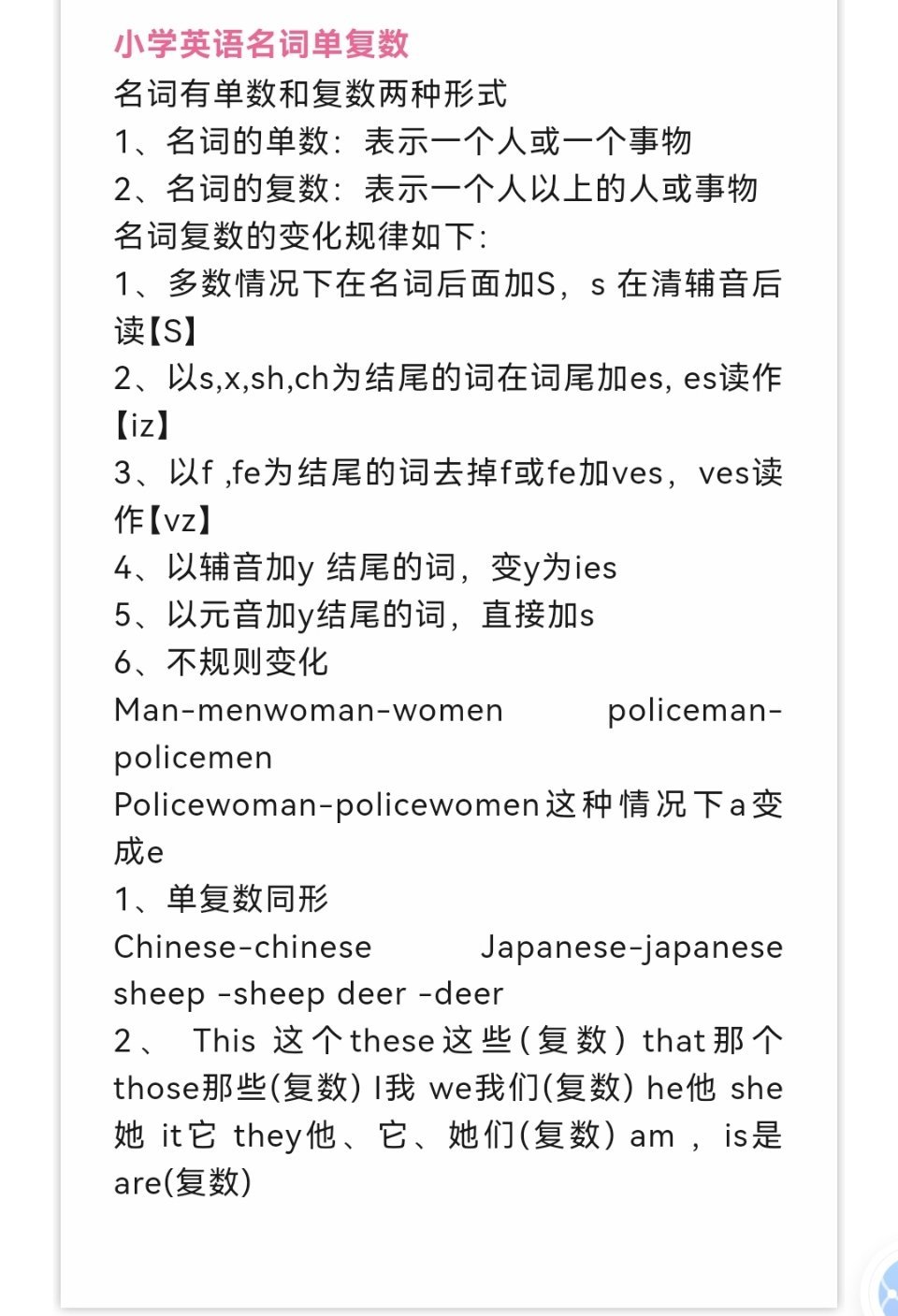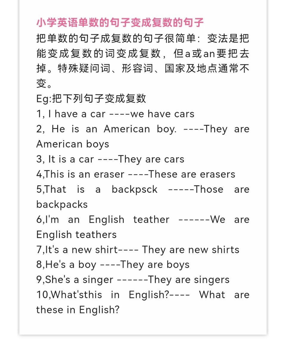 小学英语1-6年级十大基础语法,快来看看你掌握了多少?(转)