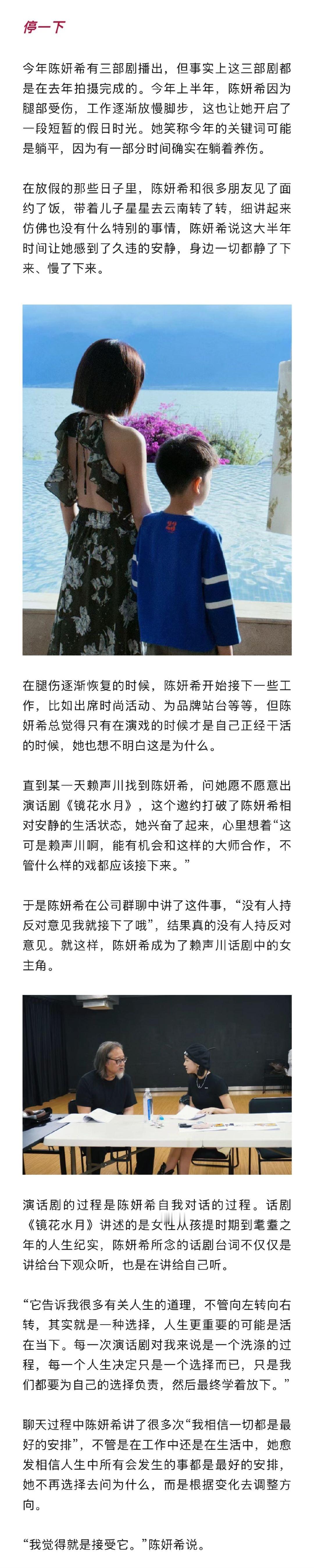 陈妍希说现在允许一切发生陈妍希说还没有想过退休 在采访中称现阶段在尝试着不去内耗,如果一件事努力过后还是一样的结果,那就证明这件事本该是这样的结果,要允许一切发生。