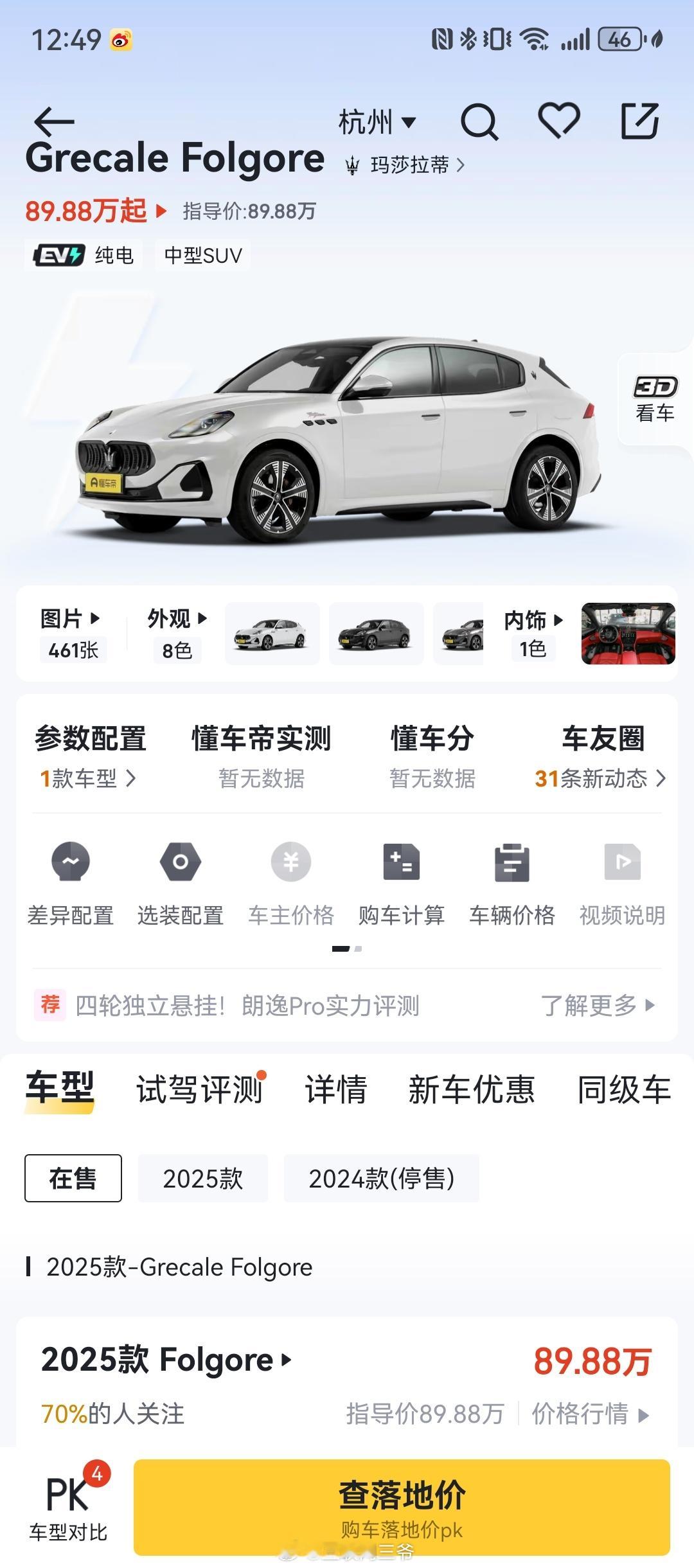 35万纯电玛莎拉蒂被一抢而空又降价了啊?真的要感谢国产新能源的崛起,让大家能开的上35万的玛莎拉蒂……官方指导价可是接近90万的车,曾经的你高攀不起,现在的纯电玛莎除了品牌力,其他不知道还有多少是消费者care的点。如果35万去买车,你会考虑买哪款?
