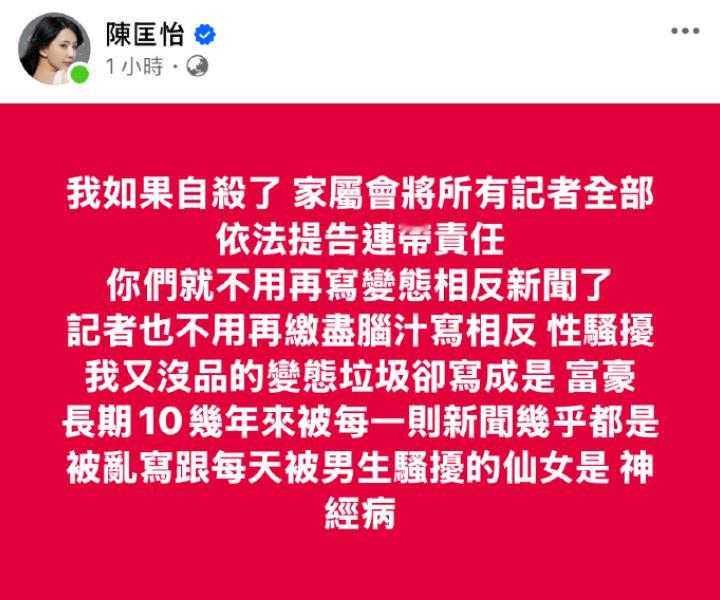 陈匡怡 想自杀很多天了陈匡怡 遗书写差不多了 啊??陈匡怡在个人社交平台疑似透露要轻生??