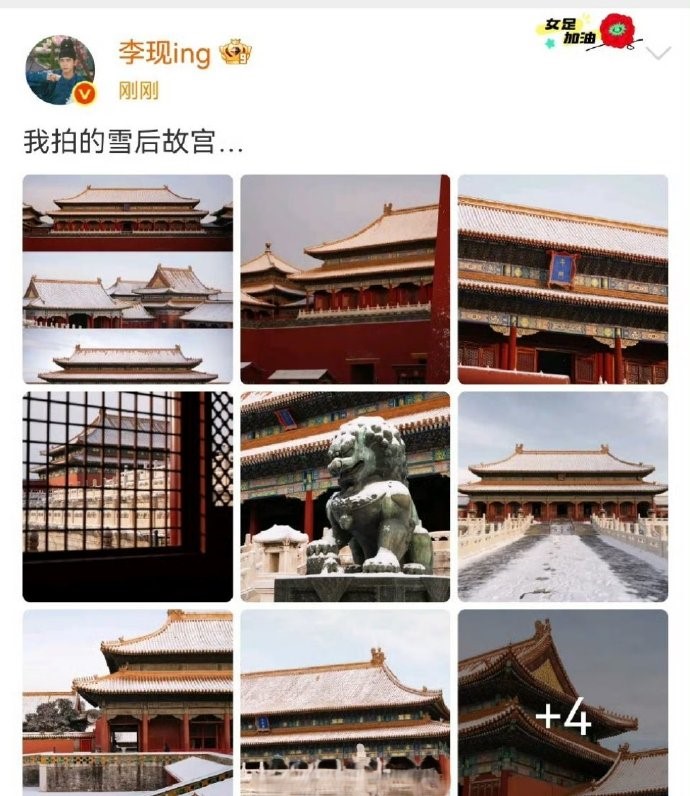 演员李现低调现身故宫拍摄雪景,尽管全身黑色装扮、口罩帽子包裹严实,仍被眼尖游客认出,其发布的13张雪景大片因构图专业、色彩惊艳!