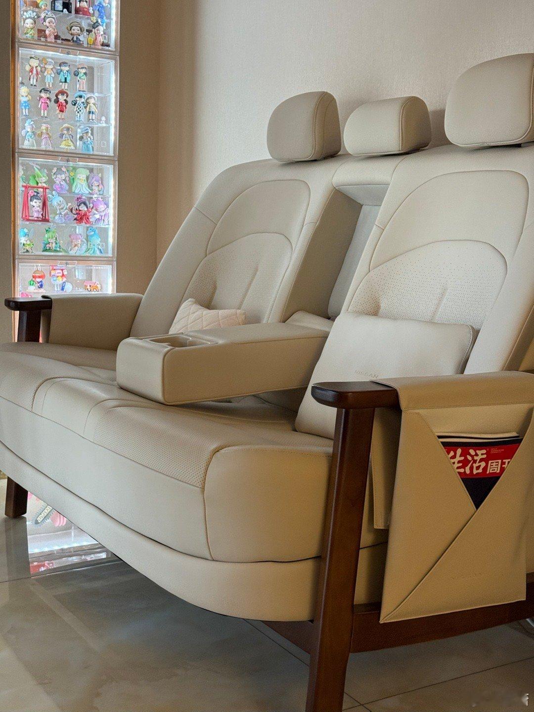 许愿成功,日产真送了这个沙发!车厂把汽车座椅做沙发真的是降维打击,研发一套座椅的钱都够买几个沙发厂了,所以不光舒服,质量还好呢。没想到的是摆在我家居然还很和谐好看!当然这个沙发太大不好收货就不抽奖了,我抽个包吧,转发评论这个同样面料的日产包加车载眼睛盒(图4)通过抽了