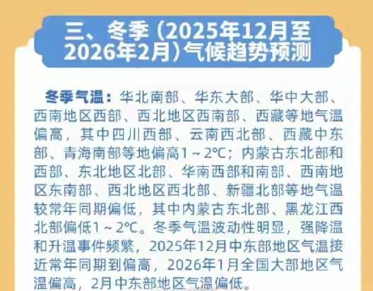 我国已进入拉尼娜状态!什么是拉尼娜?能带来什么影响? 先把话说透,拉尼娜不是啥复杂概念,本质就是太平洋中东部海水异常变冷的现象,和大家常听的厄尔尼诺是相反的,俩都是影响全球气候的“幕后推手”,威力半点不含糊! 简单说,正常情况下太平洋东部海水暖、西部冷,气流循环稳定。拉尼娜来了就反过来,东部海水变冷加剧,西部暖湿气流更旺盛,直接打乱全球大气环流,进而影响各地天气。 要注意,进入拉尼娜状态≠形成拉尼娜事件。国家气候中心明确了,今年10月我国已进入拉尼娜状态,未来2-3个月会维持,但形成完整拉尼娜事件的可能性偏低,不用过度恐慌但必须重视。 拉尼娜对我国的影响,核心集中在冬季,最直观的就是降水分布失衡,冷热反差明显。它会让我国东部、南部偏北风变强,水汽输送不足,直接导致降水偏少,干旱风险上升。 国家气候中心精准预测了今年冬季降水情况,内蒙古东北部、西部,黑龙江北部、陕西西部等多地降水偏多2-5成,这些地区要重点防范雨雪灾害,做好防寒防涝准备。 而上海、江苏南部、浙江、福建北部、江西北部等华东、华南部分地区,降水偏少2-5成,冬旱概率大增,农业灌溉、居民用水要提前做好调度,别等缺水了才着急。 除了降水不均,拉尼娜还会放大冬季寒冷程度,北方冷空气活动会更频繁、强度更强,寒潮南下的次数可能增多,低温冰冻天气会更常见,保暖防寒得提前到位。 南方地区要警惕“干冷叠加”,没有充足水汽缓冲,冷空气带来的降温会更刺骨,而且干燥天气容易引发火灾,不管是居家还是户外,防火意识都得拉满。 对农业来说,北方偏多的雨雪能缓解冬旱,利于小麦越冬,但过量雨雪会压垮作物、引发冻害。南方干旱会影响油菜生长,得及时补水保墒,稳住作物长势。 交通出行也要多留心,北方雨雪增多会导致路面结冰打滑,南方干燥可能伴随雾霾,能见度降低,不管开车还是赶路,都得放慢速度,把安全放在第一位。 拉尼娜的影响不是单一的,还会间接影响大气环境,干燥天气下空气质量容易波动,呼吸道敏感人群要减少外出,出门做好防护,避免引发不适。 很多人会把极端天气都归给拉尼娜,其实不用夸大,它是重要影响因素,但不是唯一原因,天气变化还受局部环流、地形等多种因素制约,理性看待更重要。 不过也不能掉以轻心,拉尼娜带来的气候异常持续时间不短,从10月开始维持到明年年初,这段时间天气波动会比较大,随时关注天气预报准没错。 应对拉尼娜,核心就是“因地制宜”,北方防雨雪冻害,南方防干旱火灾,大家根据当地天气情况做好准备,就能最大程度规避风险,平稳度过这个冬季。 说到底,拉尼娜就是大自然气候循环的一种表现,虽会带来异常天气,但只要提前防范、科学应对,就不用慌。做好防护,从容应对气候变化才是关键。 各位读者你们怎么看?欢迎在评论区讨论。