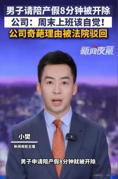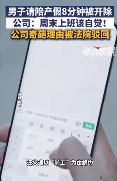 上海,一男子就要当爸爸了,他的妻子马上就要生孩子了,他喜悦之余,赶紧请假,结果刚请了10天的陪产假,仅仅过了8分钟,就被公司辞退了,公司还说双休日上班是常态,男子不上班,就算旷工了,所以工资都没有给男子,男子一气之下,起诉公司,法院明察秋毫,判决大快人心。 曹先生看着自己被辞退的通知书,他哭笑不得,他没想到自己只是请10天的陪产假而已,这是法定规定的假期,这是他的权利,他居然被辞公司给辞退了。 公司居然只用8分钟,就决定了他的去留,速度实在是太快了,并且公司还反咬一口,说他周末旷工,连工资都没有给他结,就让他走人,他实在是难以咽下这口气。 说起曹先生的遭遇,曹先生真的是一把辛酸一把泪。 曹先生刚入职一家小公司,他妻子怀孕了,孩子很快就要呱呱坠地,孩子一出生,孩子就要喝奶粉。 为了挣孩子的奶粉钱,曹先生非常珍惜这来之不易的工作,自从他应聘上这家公司,他每天早上都会准时出发,来到公司,更是不敢有一丝杂念。 他总是干净利落地把自己的工作干好,就想着能够给公司创造价值,安安稳稳地稳定下来。 每当他想到还没出世的孩子,他就满身的干劲,工作更加努力了,这份工作给他带来了无限的希望。 就在这样美好的希望中,曹先生等来了孩子的坠落,他想到虚弱的妻子,刚刚诞下孩子,需要他的陪伴,他也顾不上工作了。 更何况他很清楚,他有10天的陪产假,只要陪妻子,度过这10天的虚弱时间,妻子也能很好地恢复过来,照顾孩子,他就可以再回来安心工作了。 初为人父,他很激动,很快就把请假条写好,把它交给了领导,他回到工作岗位,他就收拾自己的东西,准备交接。 想到那10天的假期,他满心的喜悦,可他的喜悦仅仅只维持8分钟,现实让他大吃一惊。 8分钟之后,一则通知将他拉回了现实,公司竟然做出决定,开除他。 当他看到那则通知,他简直无法相信,公司居然因为他请10天的陪产假,就要将他开除掉,他真的是难以置信。 他当然不愿意就此吃下哑巴亏,10天的陪产假,他是有权利享受的,他请假不过是合理的要求,凭什么公司要开除他? 他当然清楚,自己刚入职没多久,公司还没有把他当一回事,觉得他请10天的陪产假,就是对公司造成损失,所以公司才会辞退他。 他想到这个理由,感到非常的气愤,感觉公司在剥夺员工的权利,公司的过分行为何止于此! 为了辞退曹先生,他们还拿周末上班来说事,说曹先生周末不上班,就是旷工,这简直就是反咬一口。 周末上不上班,本来就是员工的自主选择,员工可以不来上班,公司却说周末来上班是常态,曹先生没有来上班,就是旷工。 就这样,公司不由分说,把曹先生给辞退了,曹先生当然不能接受这样的结果。 孩子出生,他要给孩子挣奶粉钱,这份来之不易的工作,这么不清不楚地失去了,他当然要为自己讨一个公道,他觉得公司是违法辞退他。 为了拿到应有的赔偿,给孩子买奶粉,他顾不上自己的感受,他要公司给一个合理的说法,既然公司不能给他一个合理的说法,那他只有起诉公司。 那么,曹先生该怎么办呢? 首先,曹先生请的是陪产假,这是员工拥有的权利,他可以请假。 《劳动法》第40条规定:用人单位在元旦、春节、国际劳动节、国庆节以及法律、法规规定的其他休假节日期间,应当依法安排劳动者休假。 公司以此为由辞退他,这是不合法合理的。 其次,公司违规辞退曹先生,曹先生可以要求公司赔偿。 《劳动合同法》第87条规定:违法辞退员工的赔偿金应为经济补偿标准的二倍。经济补偿按员工在本单位工作的年限计算,每满一年支付一个月工资;六个月以上不满一年的,按一年计算;不满六个月的,支付半个月工资。 一般情况下,公司违法辞退员工,需要根据员工的工作时间,以及工资进行赔偿,在曹先生和法院的努力下,他获得了8000元的赔偿。 那么你对曹先生的事情有何看法呢?