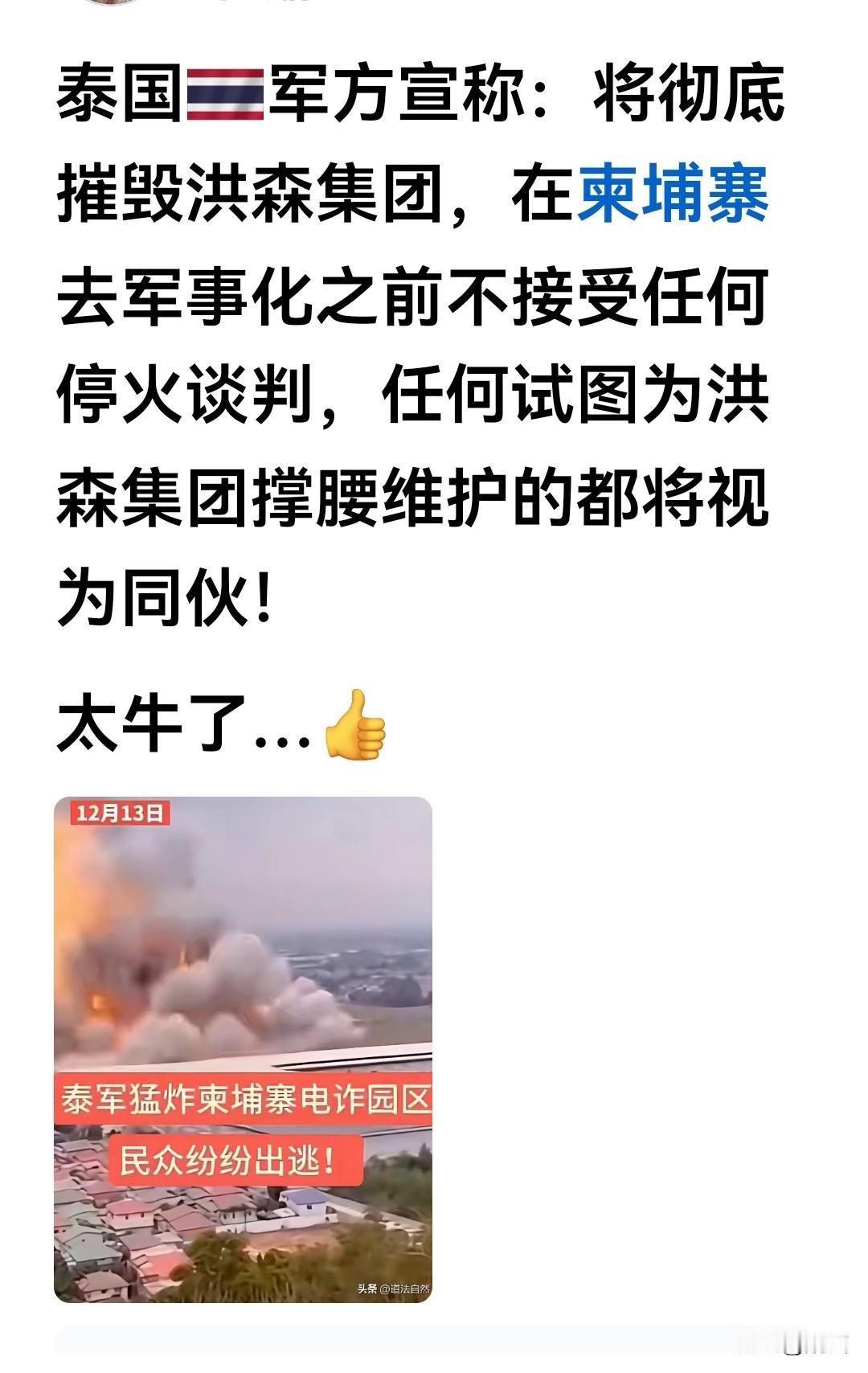 俗话说,天作孽犹可活,自作孽不可活。 停建东大的运河项目,邀请倭国军舰驻扎军演,跪舔老美,背刺佩坦通。纵容电诈坑害邻国。 洪森父子远结近坑,终于把自己埋入坑里,这个三姓家奴的好日子到头了。 泰军军方明确了作战目标,要铲除洪森集团。 不是没给他机会,时间窗口已过。
