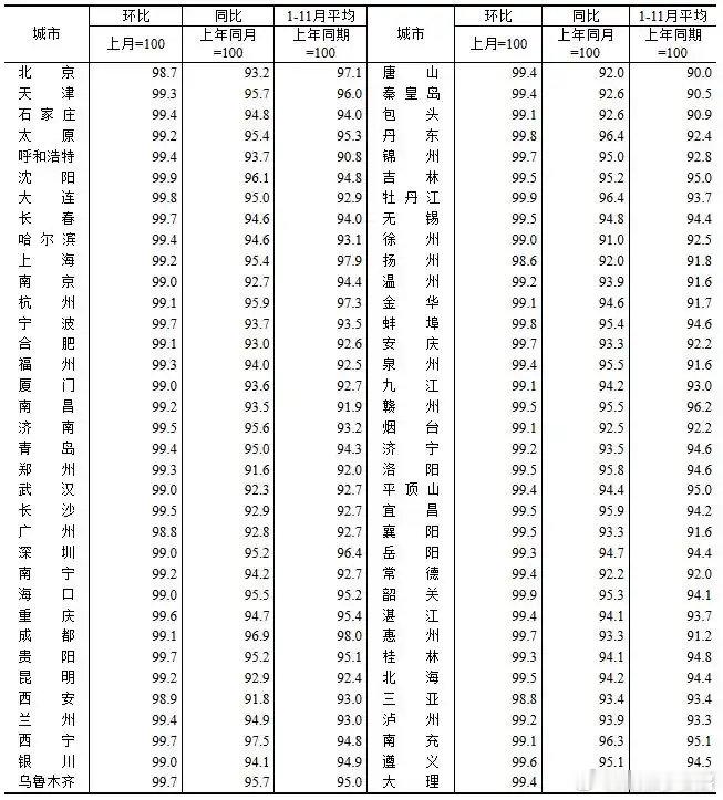 国家统计局数据显示,2025年11月份,70个大中城市商品住宅销售价格环比总体下降、同比降幅扩大。11月重点城市二手住宅价格同比变化:广州-7.1%、北京-6.8%、深圳-4.8%、上海-4.6%。郑州-8.4%、西安-8.2%、武汉-7.7%、南京-7.3%、厦门-6.4%、重庆-5.3%、杭州-4.1%、成都-3.1%。上海、杭州、成都表现相对坚挺。