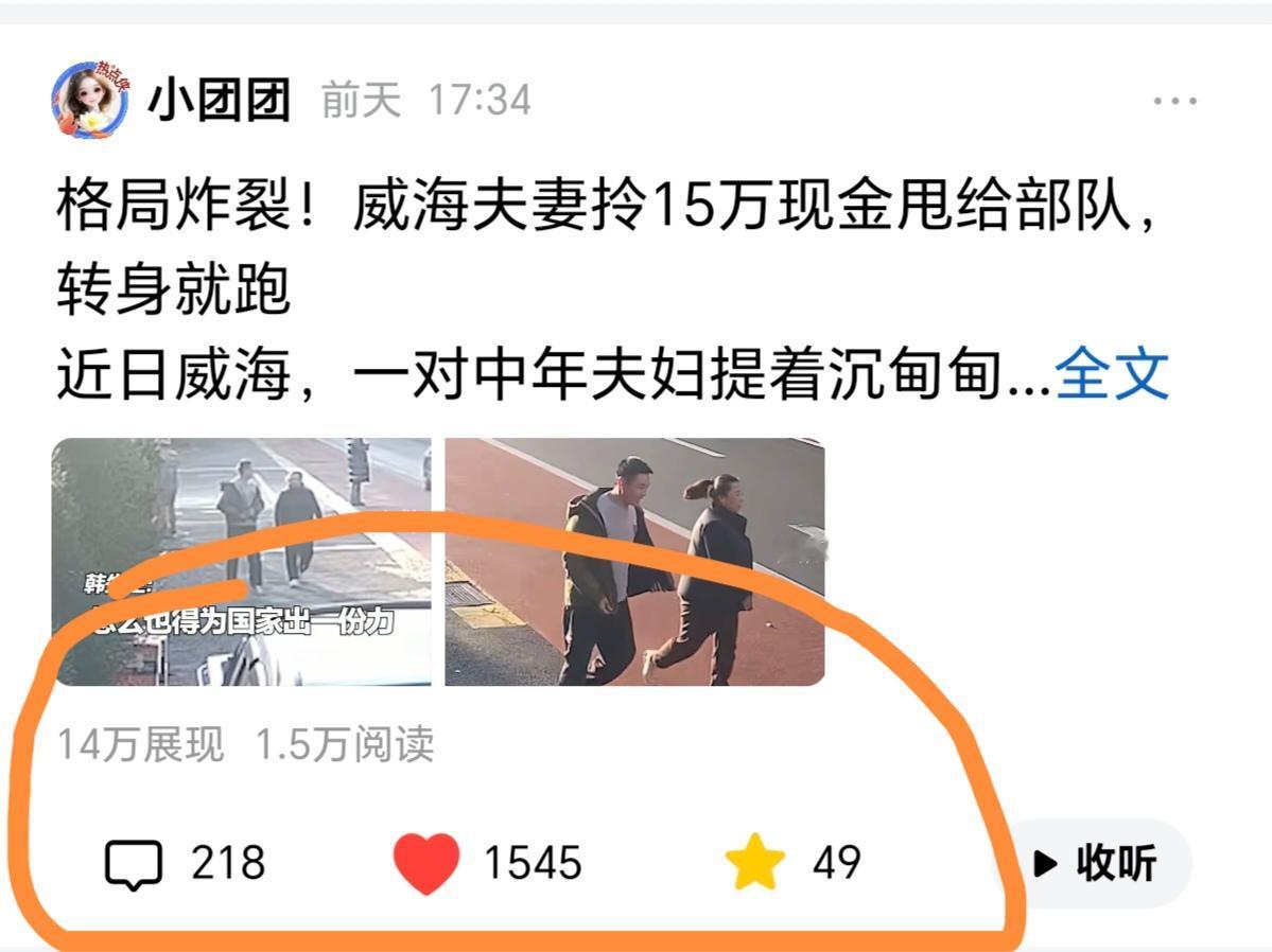 万万没想到! 昨天发的那条头条1万5的阅读量, 点赞数居然飙到1500+, 点赞率直接冲到10%! 评论区更是炸开了锅,200多条留言热火朝天地聊不停,有夸内容干货的,有分享同款经历的,这互动率简直绝了! 可开心劲儿还没过去,今天收益一出来直接傻眼——就几块钱!明明数据这么能打,互动热度也够高,为啥收益这么寒酸啊?有没有懂行的朋友来给我支支招?