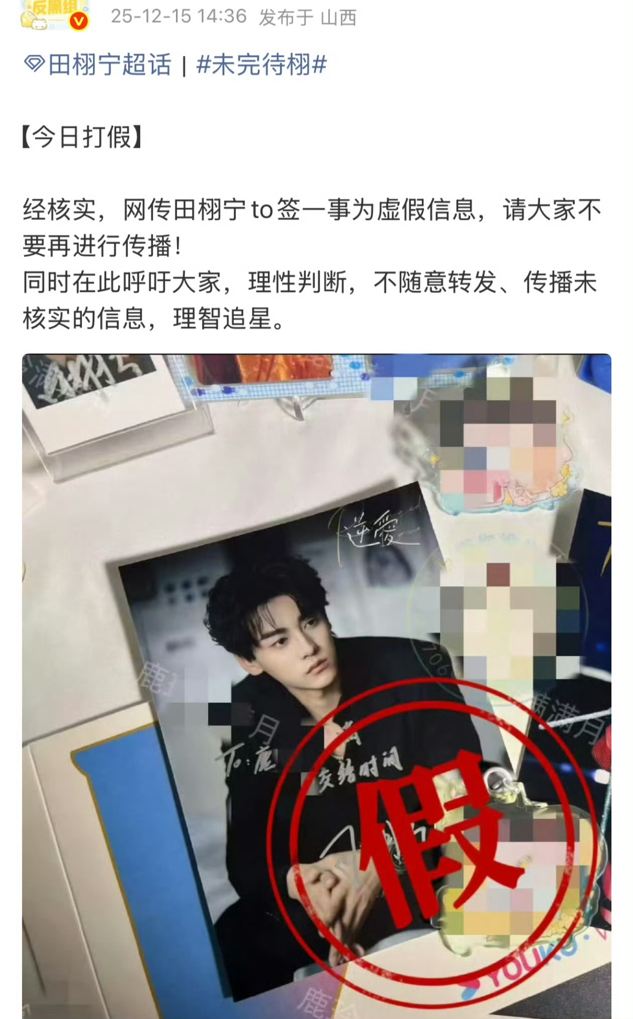 田栩宁方已出来打假田栩宁和梓渝亲签的to签