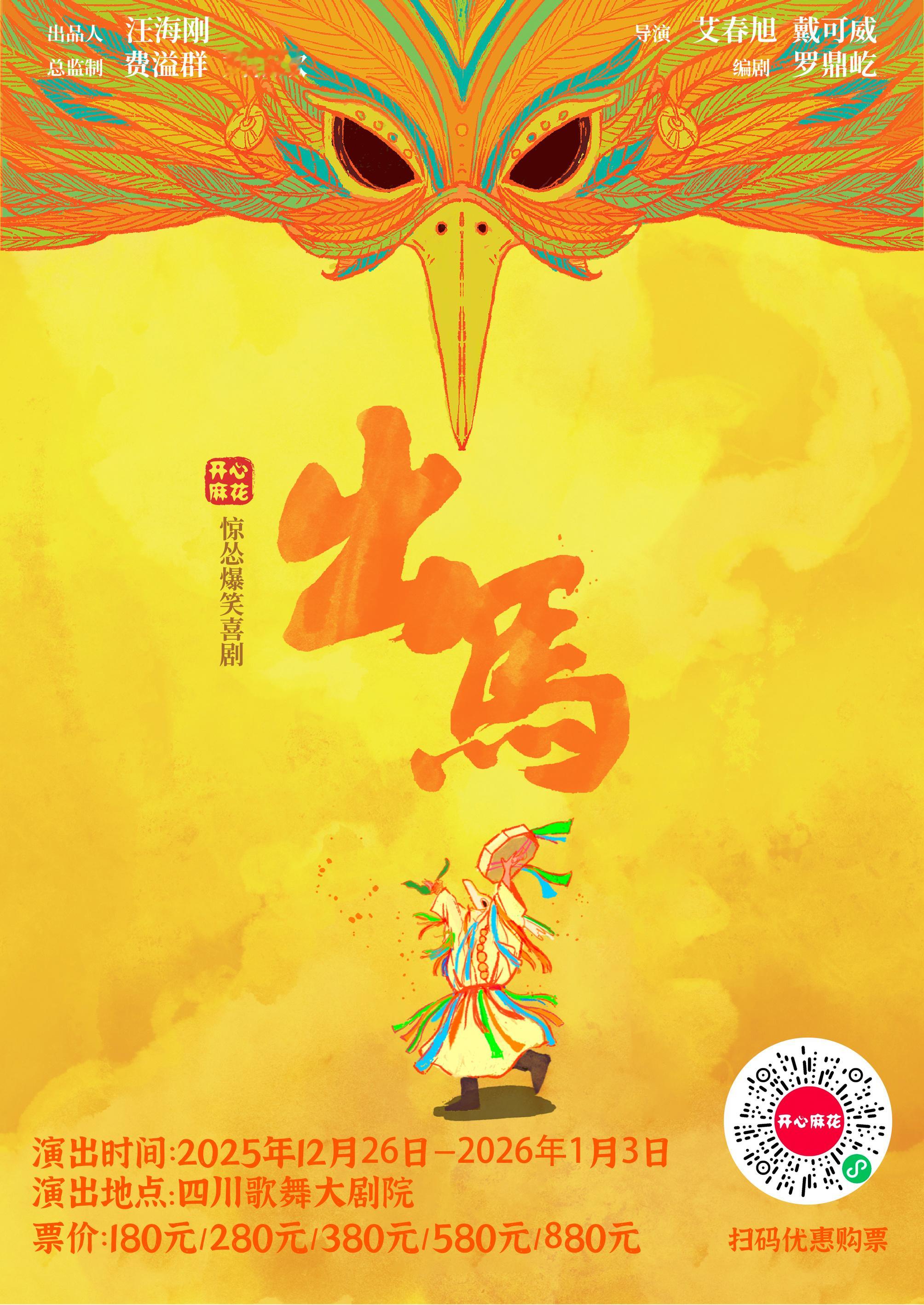 出马 ✖️芝士福利社 开心麻花“天花板”剧目🔥近三年最高分作品‼️2025年度爆剧‼️99.9%好评度的《出马》又要在成都上演啦大东北“职场混子”出马师江南豪门争权夺产,县令背负KPI急到上火⁉️层层反转,让观众全程屏息~悬疑、民俗、古风、惊悚、爆笑,想看的都🈶‼️一人多角丝滑入戏➕精美服化道➕三面大转台叠加小转台的巧妙布景,狠狠期待啦⏰2025.12.26-2026.1.3📍四川省歌舞剧院【转➕评➕关,抽铁粉一起去现场🎫】
