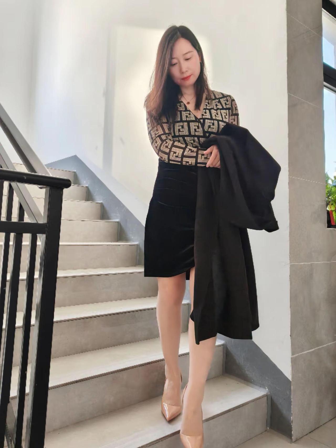 夜晚穿搭指南:黑色皮草外套+紧身裙,时尚又保暖。