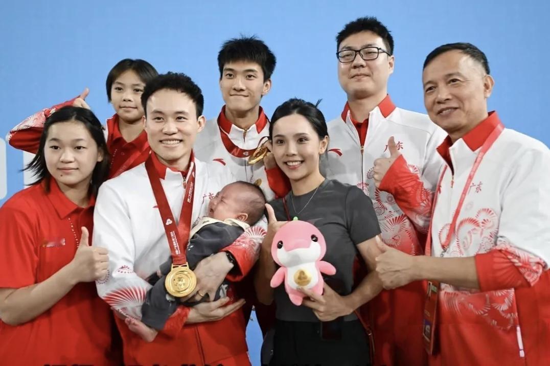 广东跳水队夺冠也太好嗑了! 恭喜广东男子跳水队拿下团体冠军,看比赛的时候直接激动到拍手!陈艾森这位老将也太能打了,三届奥运会过去还坚守赛场,里约奥运双冠王的实力依旧在线,真的狠狠佩服! 谢思埸也超棒,奥运冠军的含金量没得说,更甜的是他老婆和宝宝都到现场了,领奖台上抱着娃展示金牌的画面也太暖了~全红婵还帮忙带娃,婵妹抱着小婴儿的样子软乎乎的,果然是跳水队团宠没错了! 广东跳水队这波又拿冠军又发糖,属实是实力和温情拉满,期待他们接下来再创佳绩!