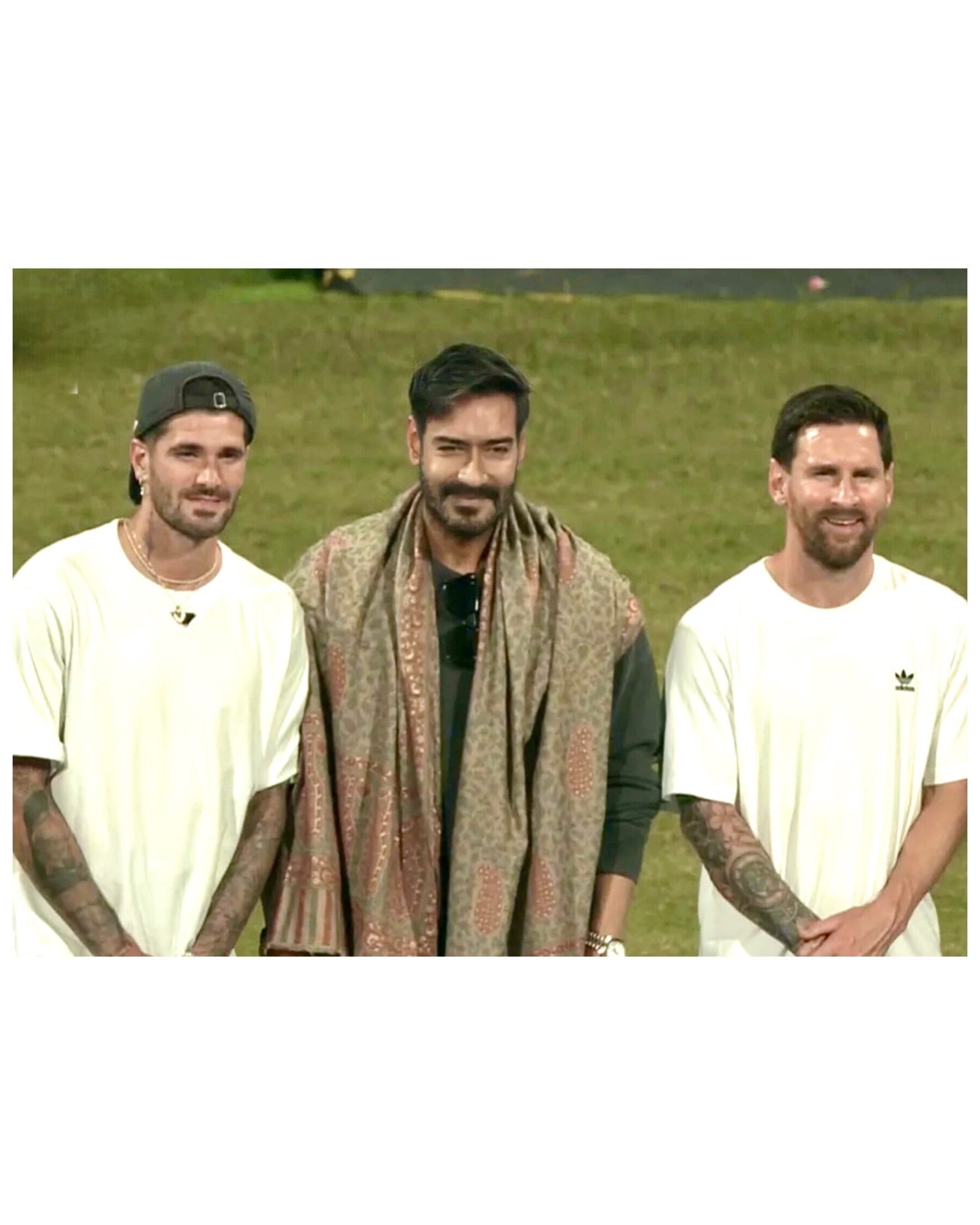 《误杀瞒天记》主演阿贾耶·德乌干社媒:"很荣幸能通过ProjectMahaDeva平台支持尊敬的首席部长德夫·法当维斯先生的愿景,并见证马哈拉施特拉邦60名年轻球员与梅西、苏亚雷斯、德保罗等传奇人物一起登上世界舞台。"梅西印度行梅西