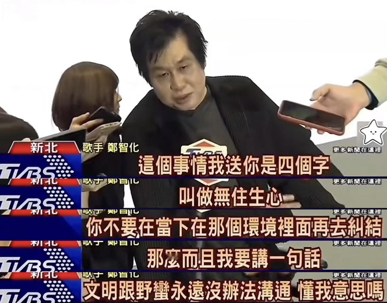 很多80后甚至90后对郑智化是有着特殊情感的,从心理上并不愿意否定当年的精神偶像,但他最近在采访中公开表示文明与野蛮无法沟通,确实伤了很多中年人的心,当年残疾是他的旗帜,现在却被他当作获得照顾的资本,在获得尽力帮助(登机)的情况下编造连滚带爬,被拆穿后依旧高傲,真正的文明是包容与理解,真正的野蛮才是不依不饶。