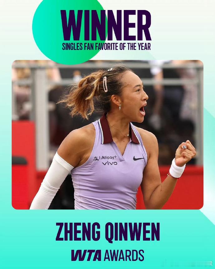 郑钦文蝉联WTA最受欢迎单打球员WTA年度各个奖项陆续公布中,恭喜郑钦文连续两年