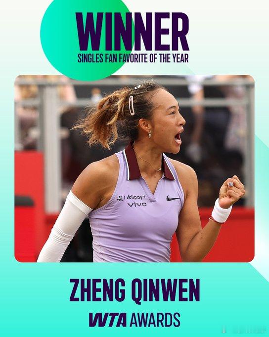 郑钦文连续两年获得WTA最受欢迎女选手。罗马半决赛,郑钦文vs高芙的比赛,为2025WTA最佳比赛。网坛风云郑钦文蝉联wta最受欢迎单打球员
