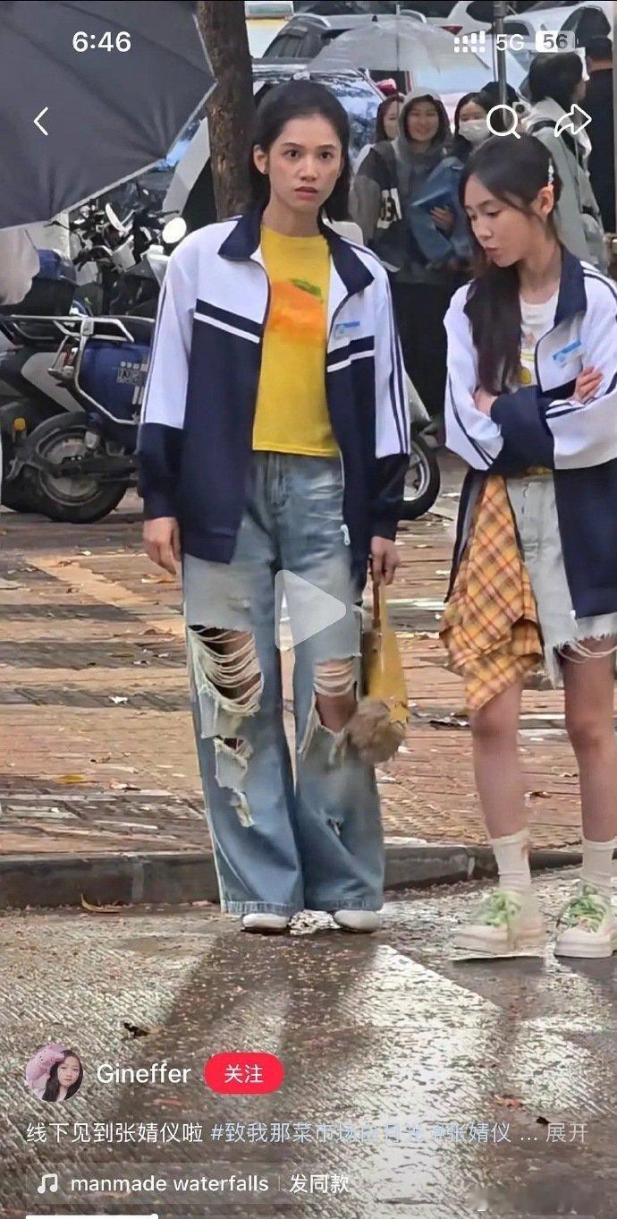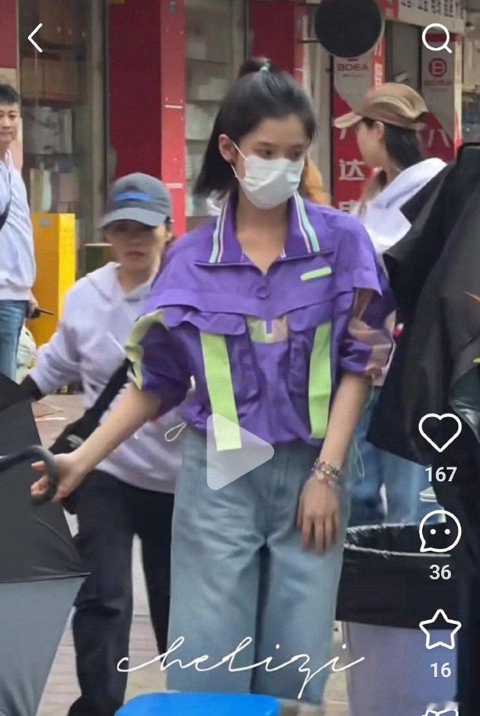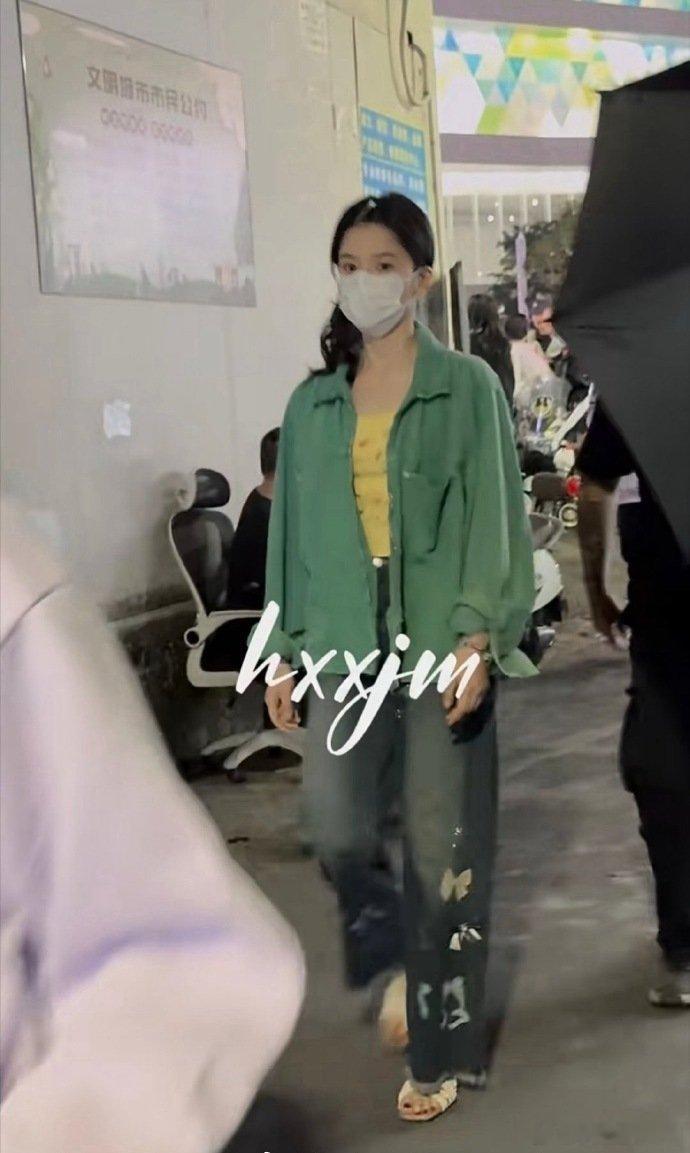 吴艳妮在成都穿着短裤大腿看起来很粗壮,表情自信又张扬