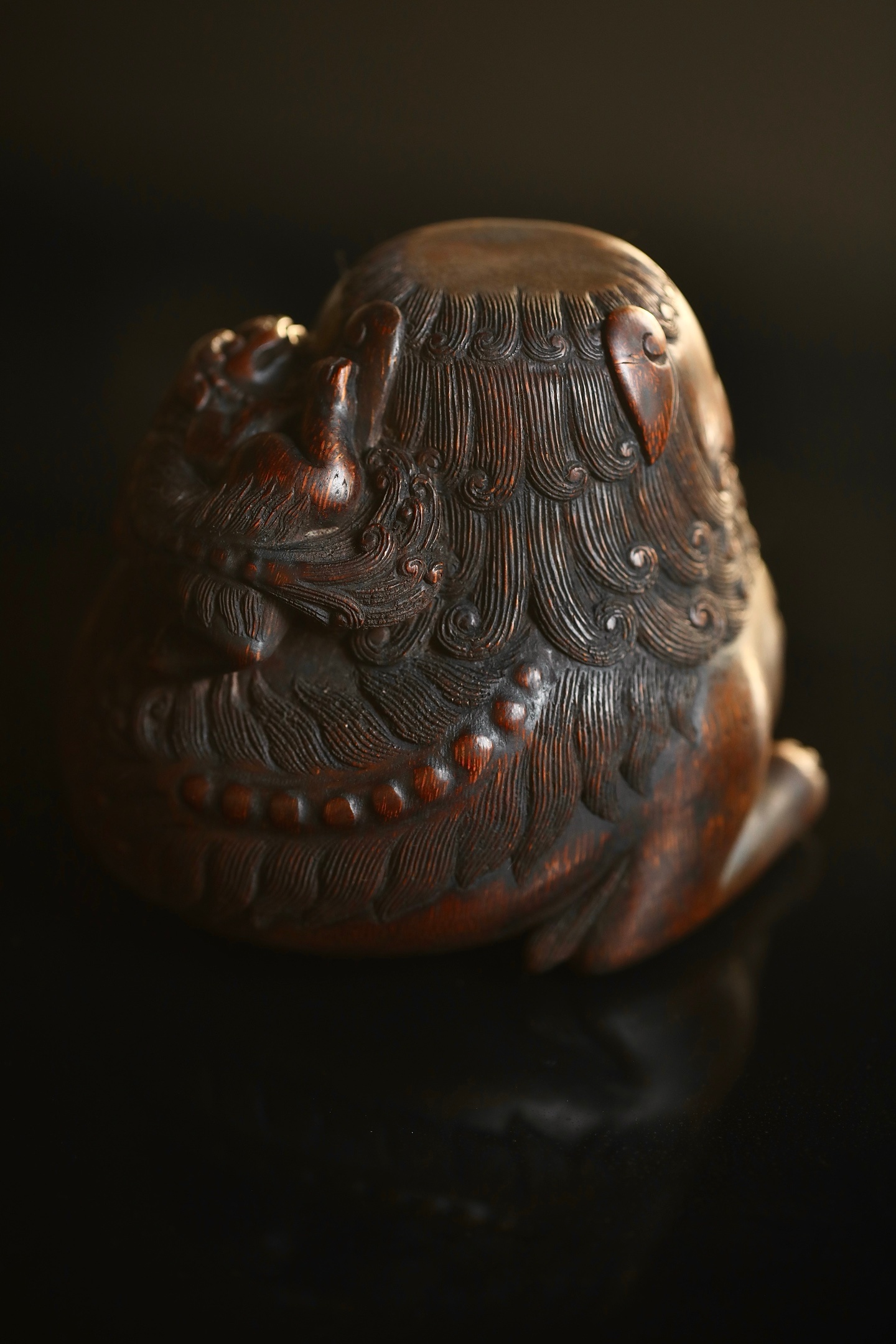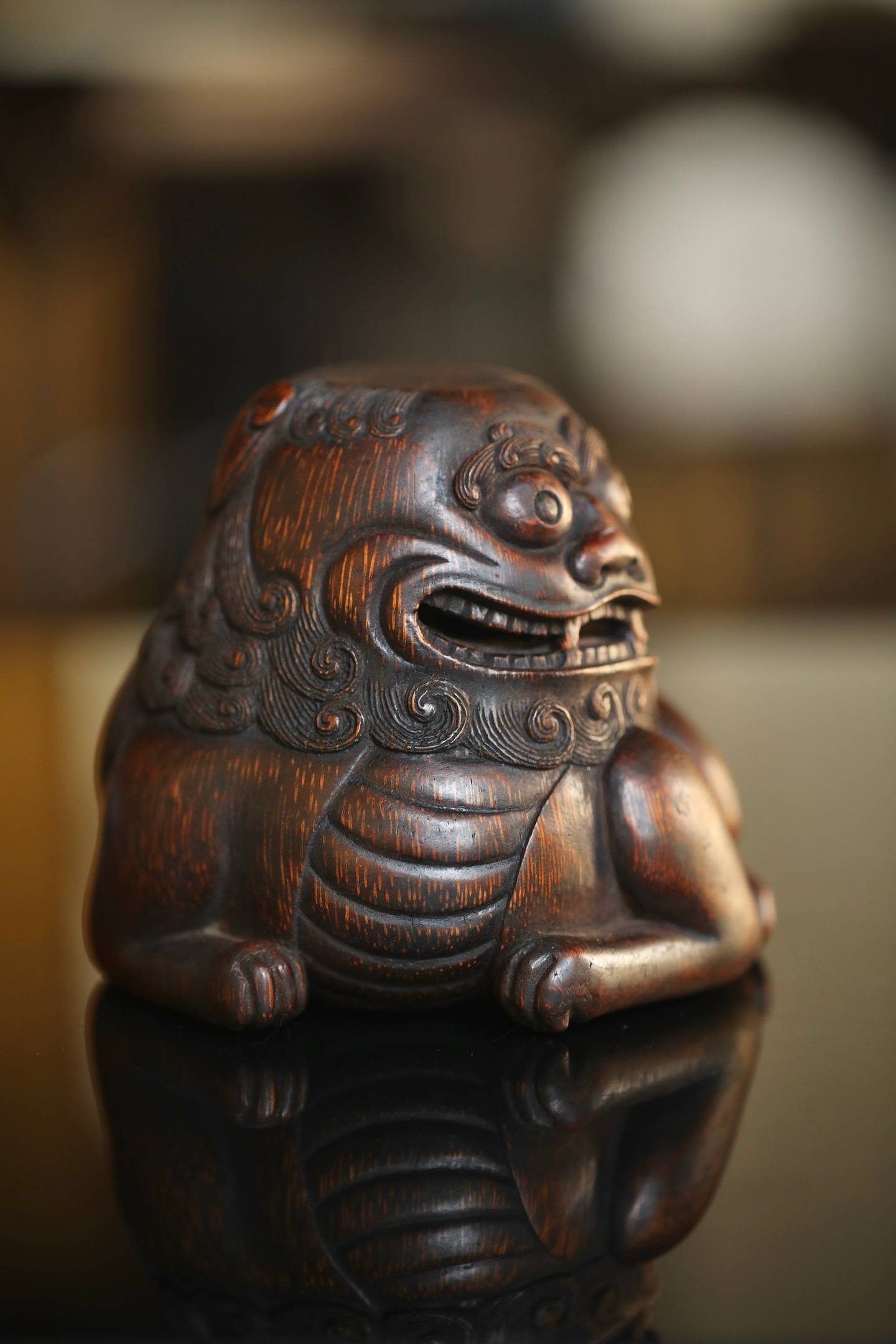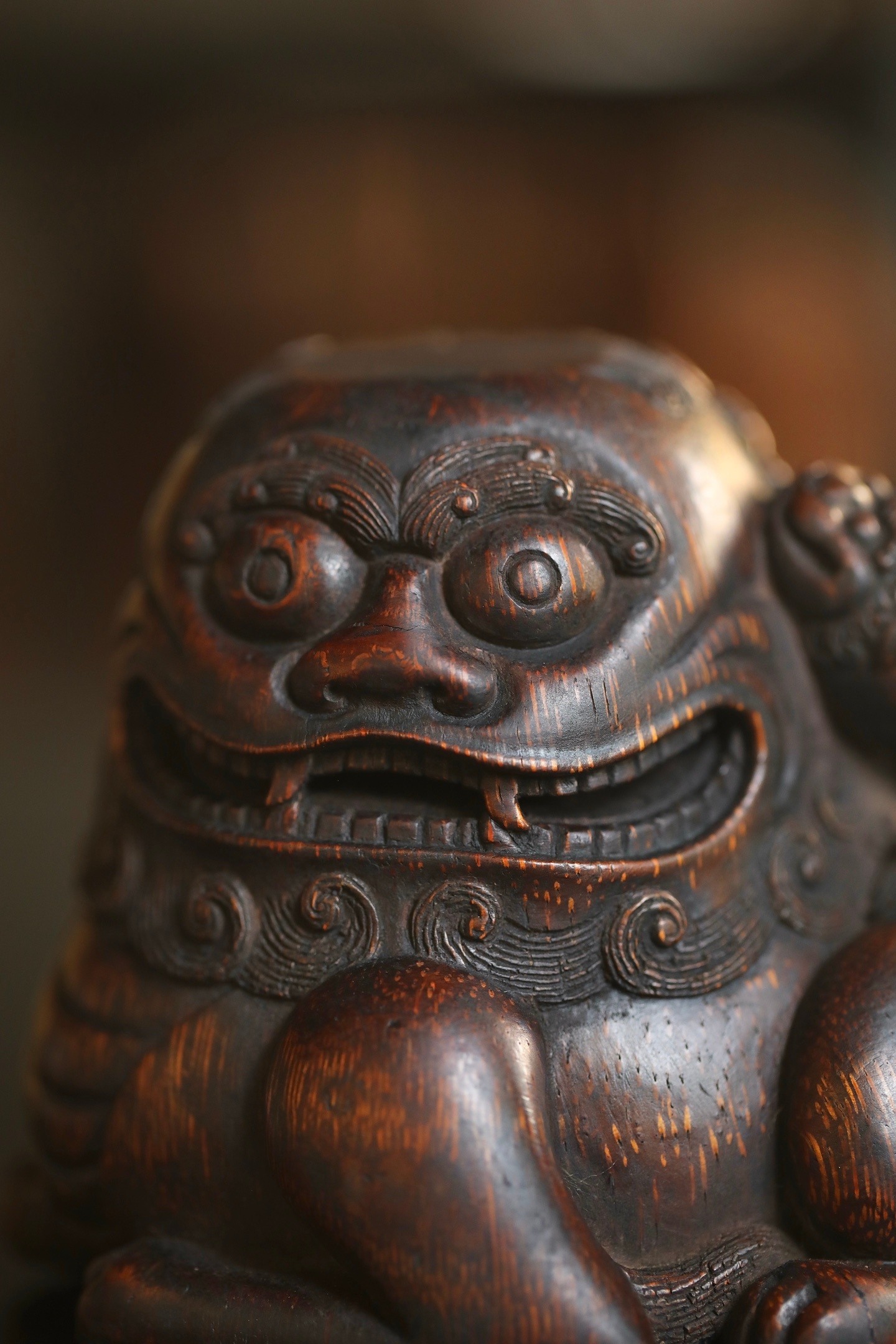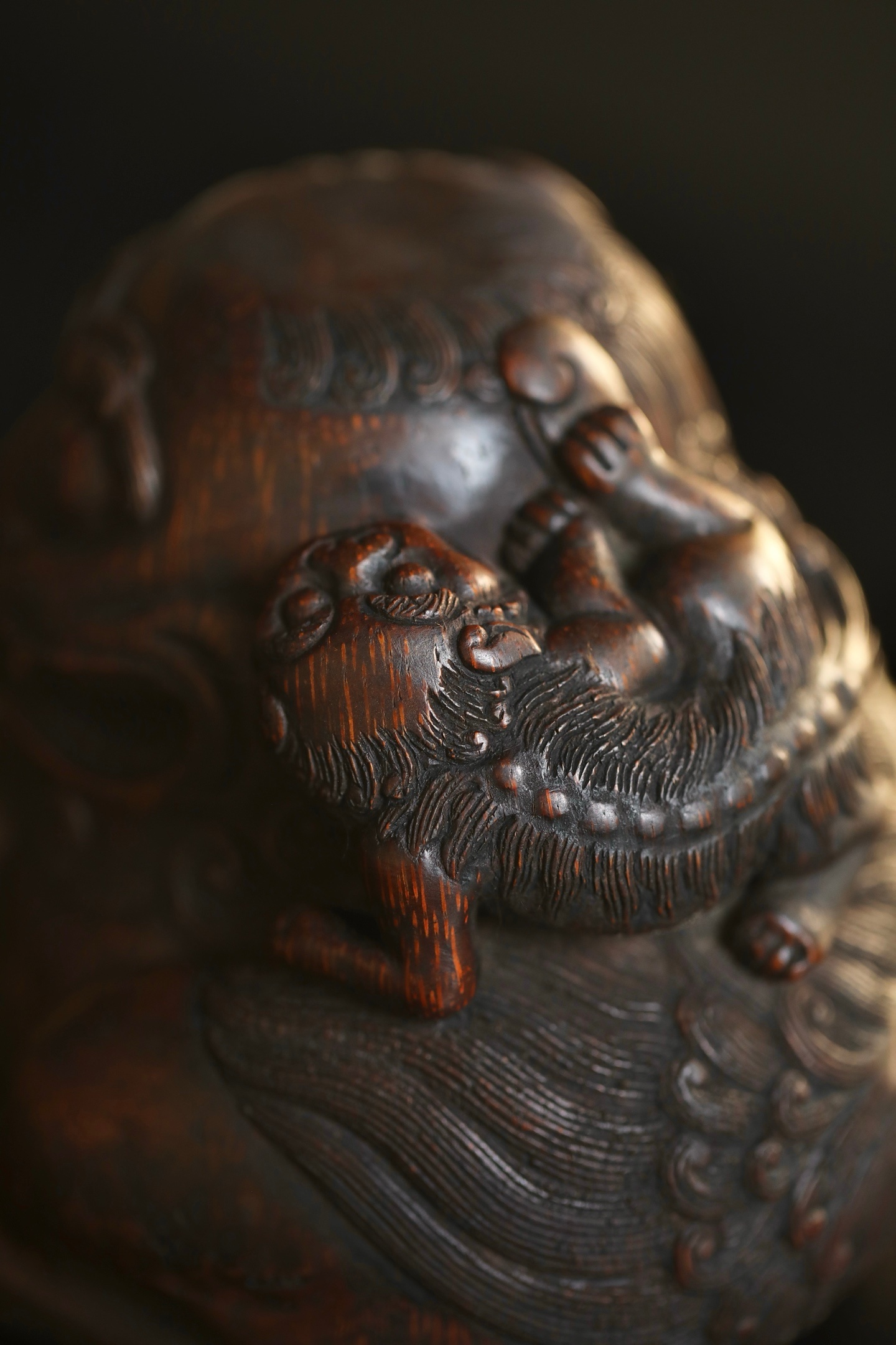 竹雕|太师少狮这尊老竹根雕的狮子,没有威武的张牙舞爪,反倒带着几分憨态可掬,