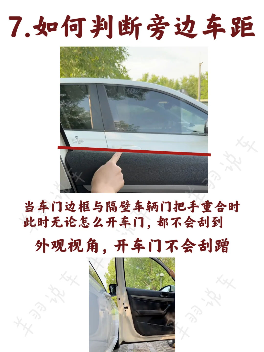 当车门边框与隔壁车辆的门把手重合时,此时无论怎么开车门,都不会剐蹭到相邻的车