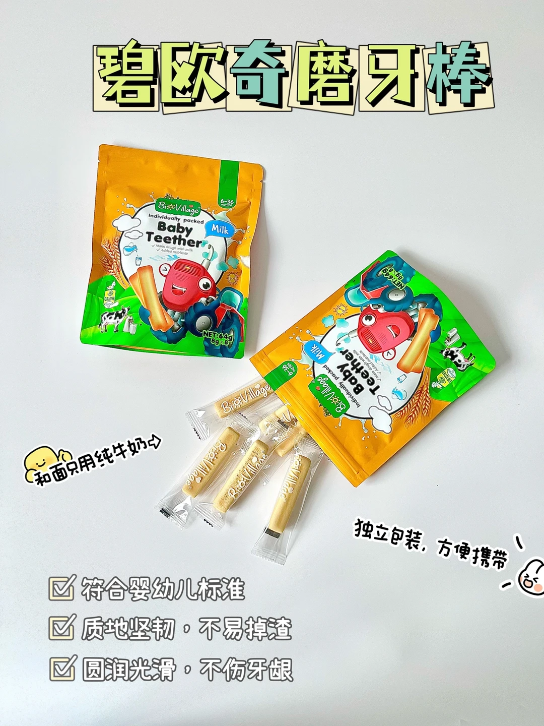 柒柒要开始长牙啦!老是乱啃东西,这不就给她安排了碧欧奇磨牙棒,符合婴幼儿标准,质地坚韧不掉渣,边缘也很光滑,不用担心会刮伤宝宝的牙龈。