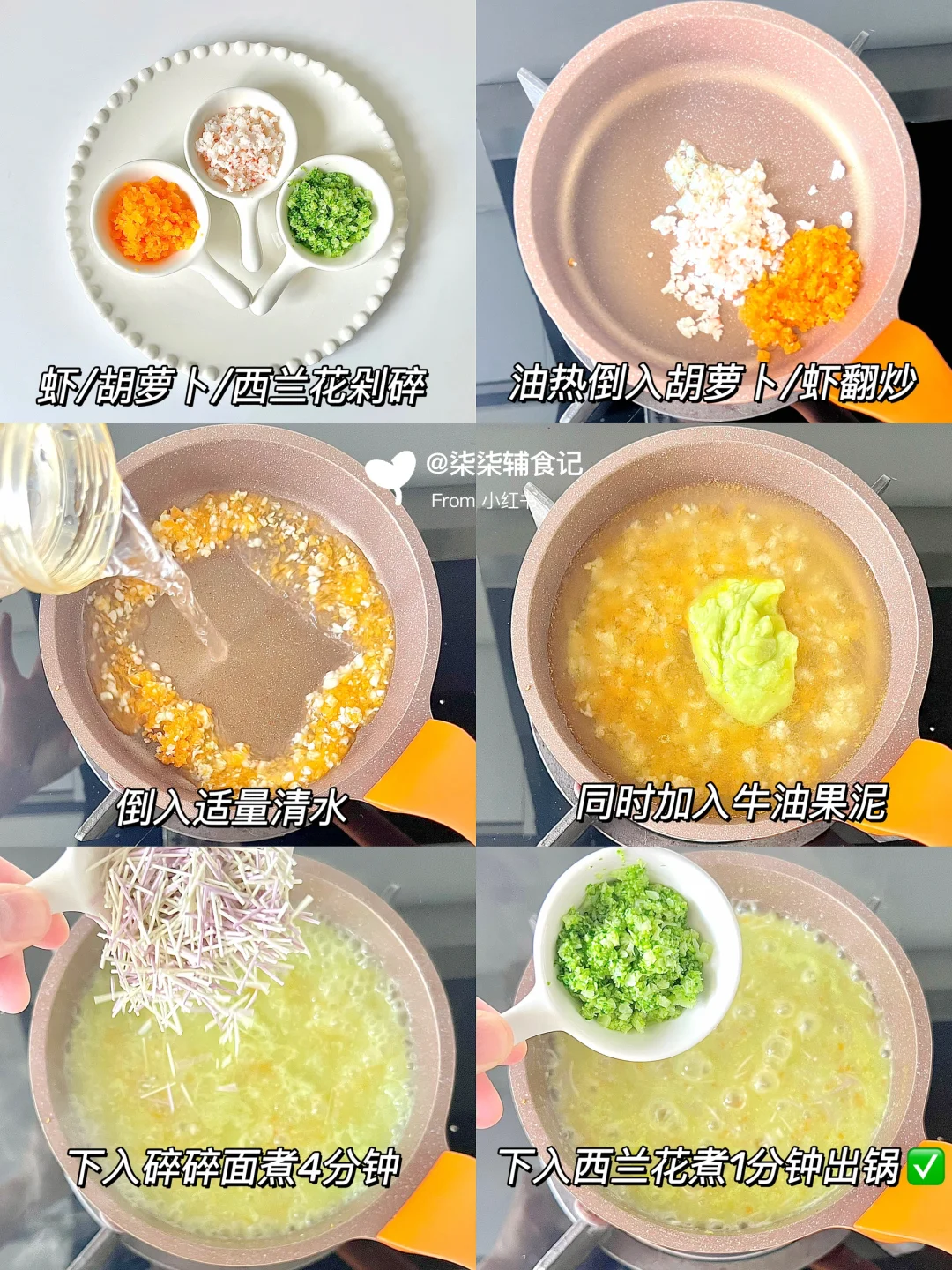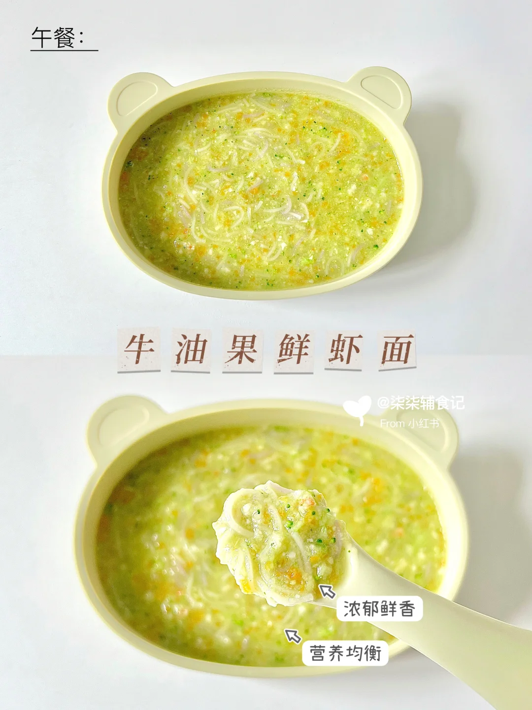 📝:碎碎面12g➕虾➕牛油果➕胡萝卜➕西兰花