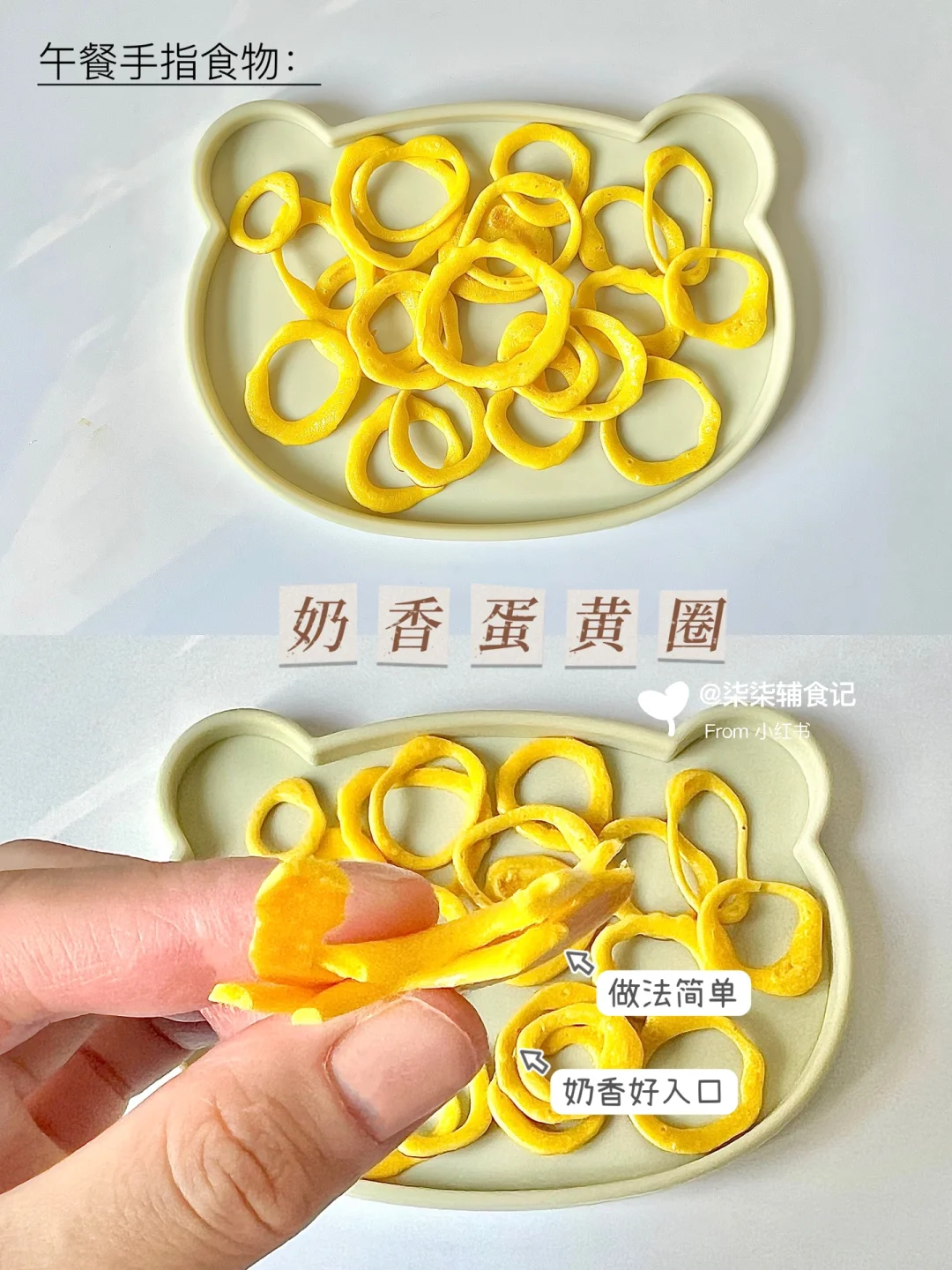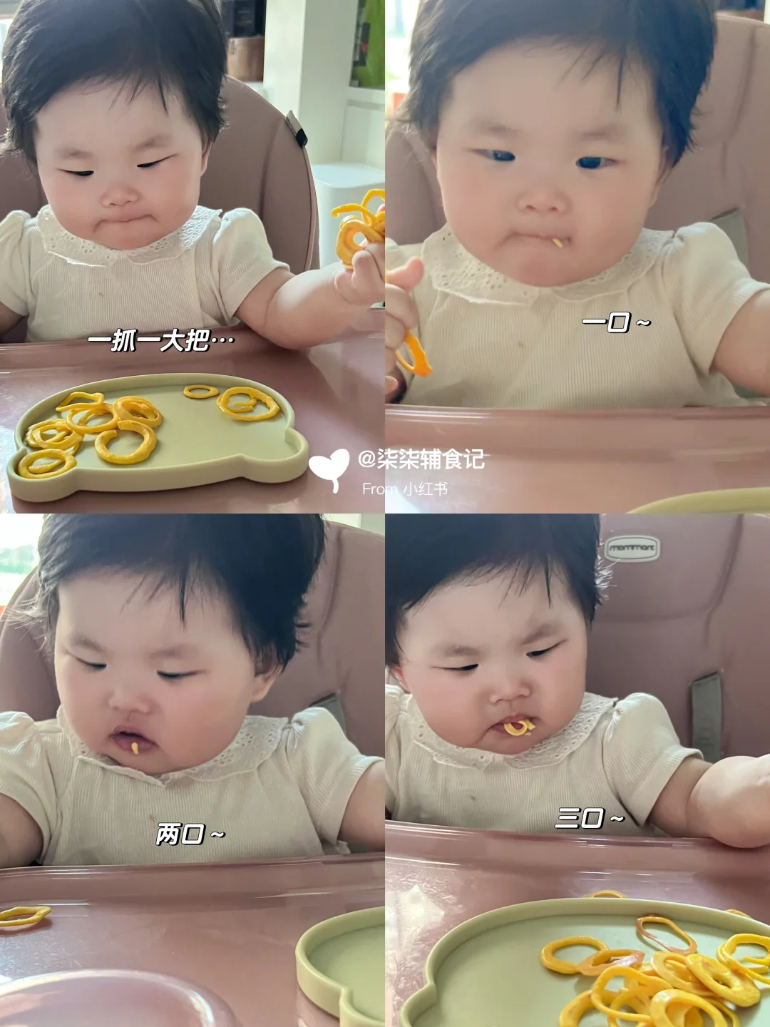 午餐吃牛油果鲜虾面和蛋黄圈,现在每次给柒柒做手指食物🤌她就老开心了,刚端上来就抓一大把 ,蛋黄圈吃了几个就开始玩啦…还往地上扔,全被奶思捡光光 便宜奶思了,(狗狗),牛油果不要加太多哦,加太多宝宝可能不太愿意吃。