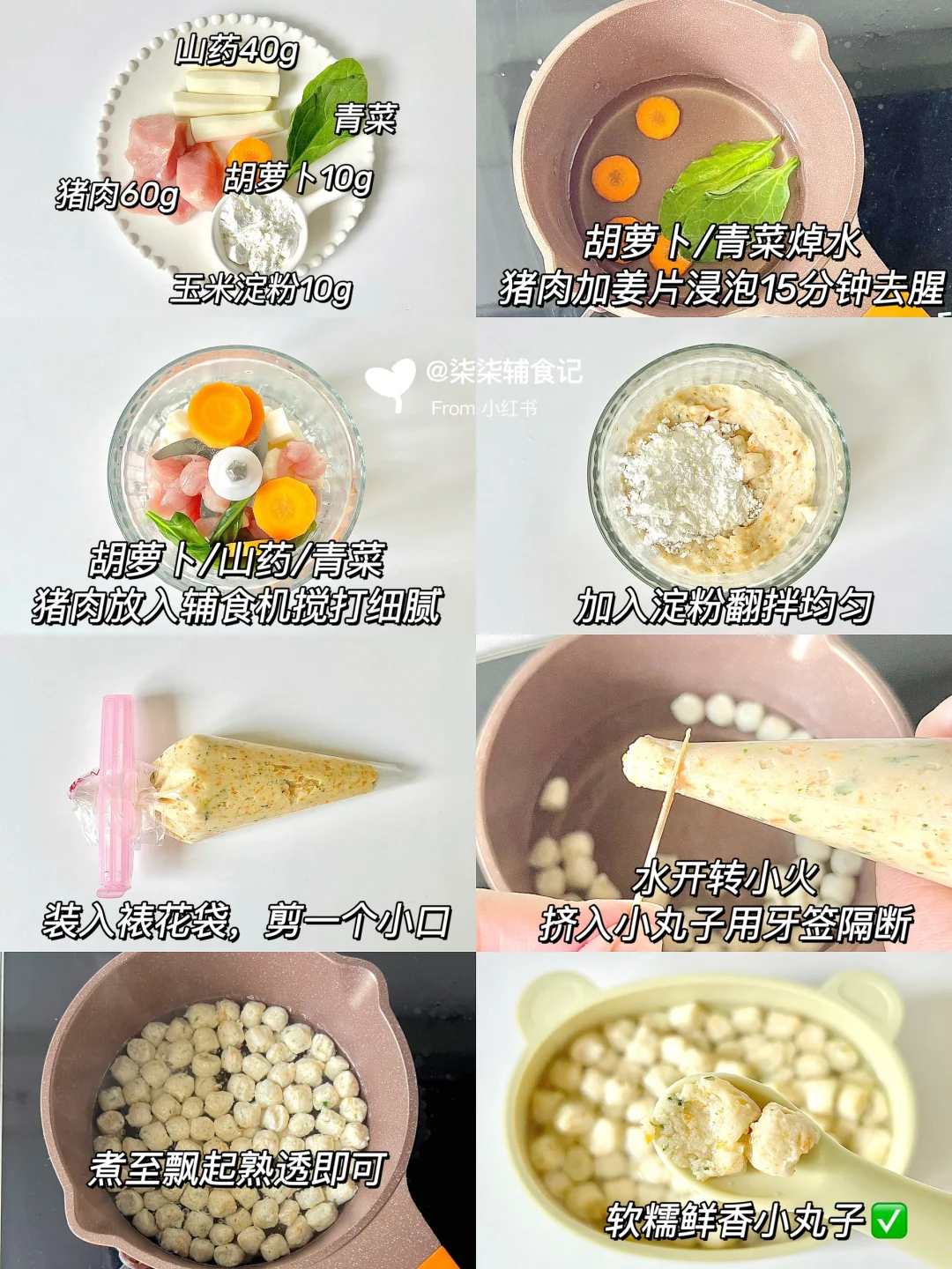 📝:山药40g➕胡萝卜10g➕猪肉60g➕玉米淀粉10g➕青菜