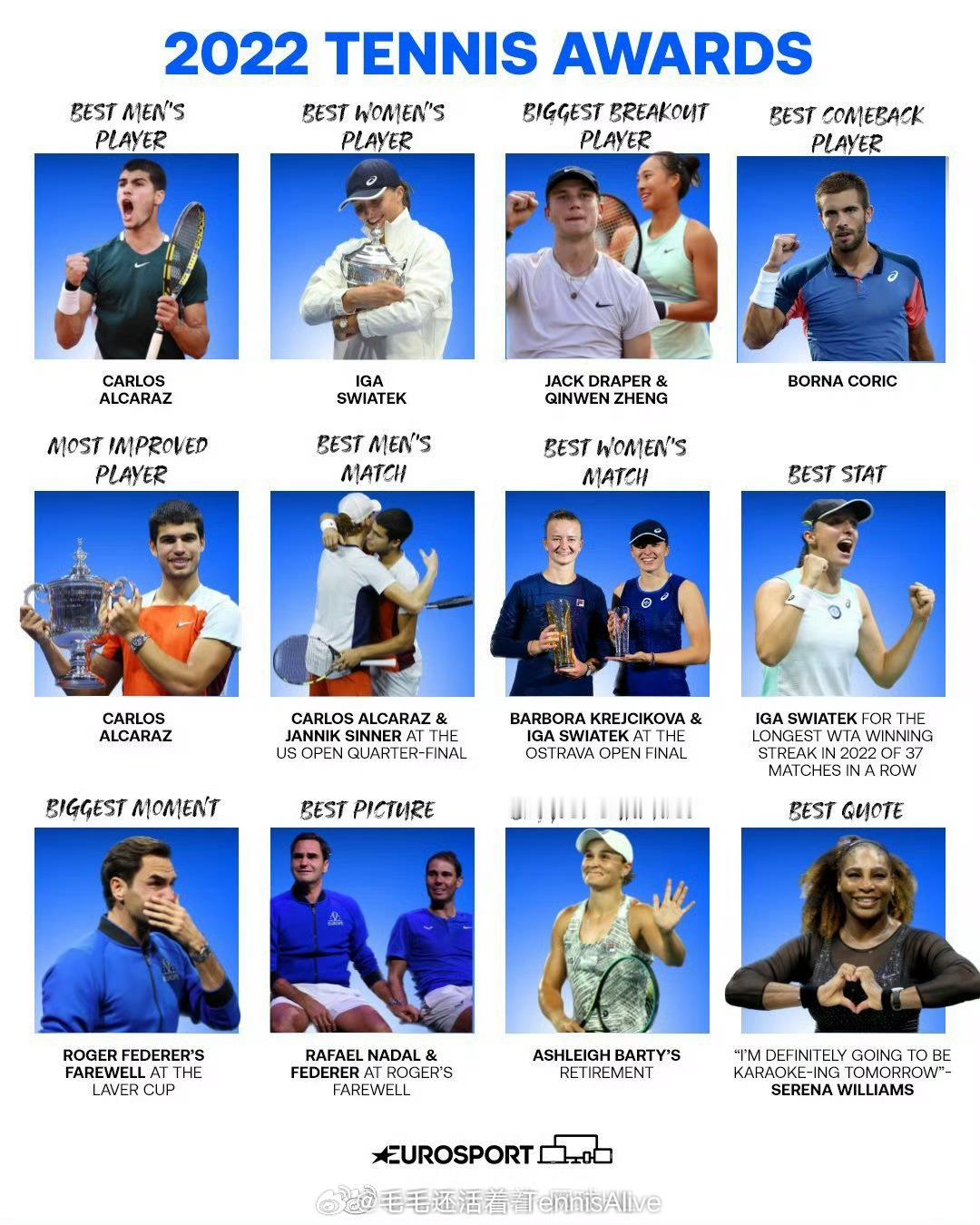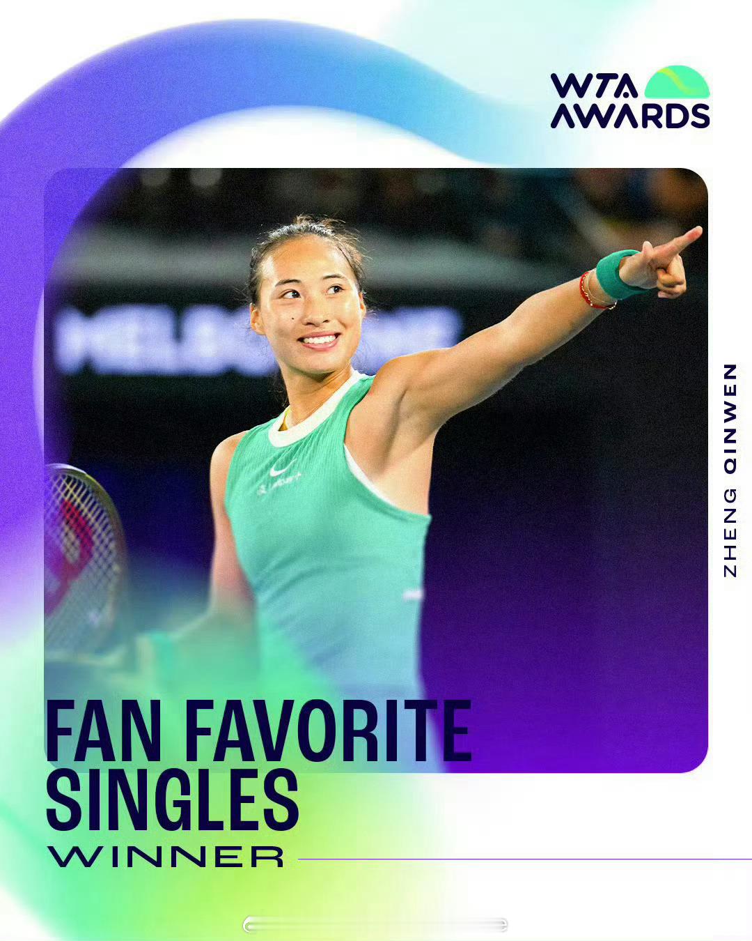【郑钦文职业生涯拿过的WTA奖项】2025WTA最受欢迎单打球员🔥2024WTA最受欢迎单打球员2023WTA年度最快进步球员2022欧洲体育评选最大突破球员2022WTA年度最佳新人郑钦文蝉联wta最受欢迎单打球员