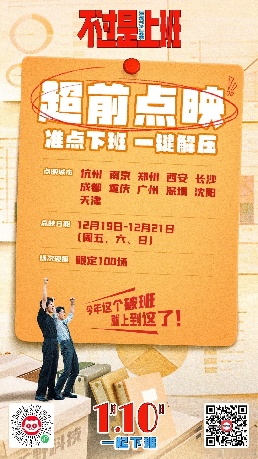 电影《不过是上班》超前点映开启12.19-12.21(周五、六、日)杭州、南京、郑州、西安、长沙、成都、重庆、广州、深圳、沈阳、天津,限定影院放映