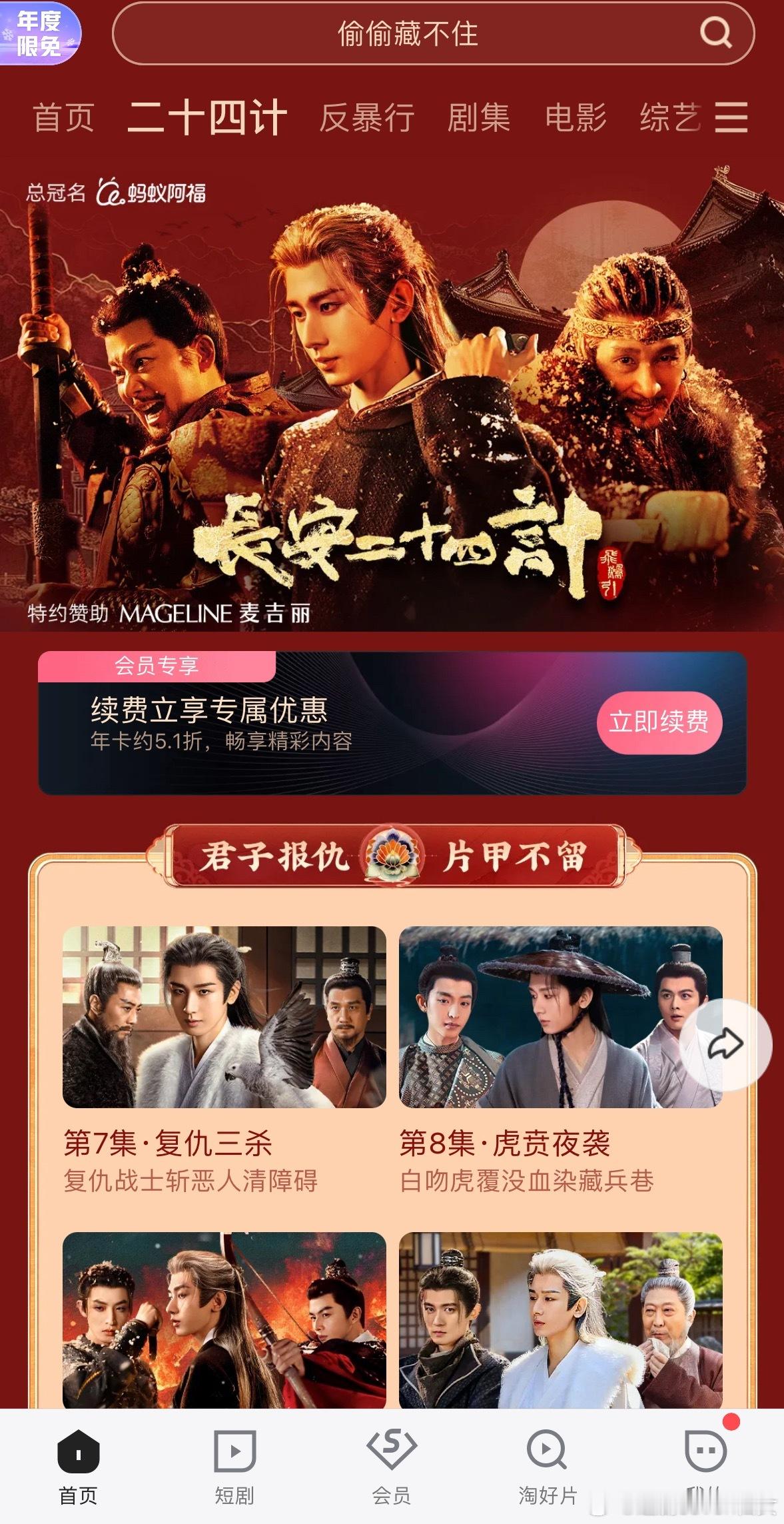 长安二十四计新增总冠名:蚂蚁阿福,播剧中途加总冠的含金量,播出效果业内品牌超满意。目前长安二十四计有最高级别的“总冠”,另有“特约赞助”,高配置招商,开播第二天广告单集时长就创平台年冠纪录了,成毅商业价值太牛了