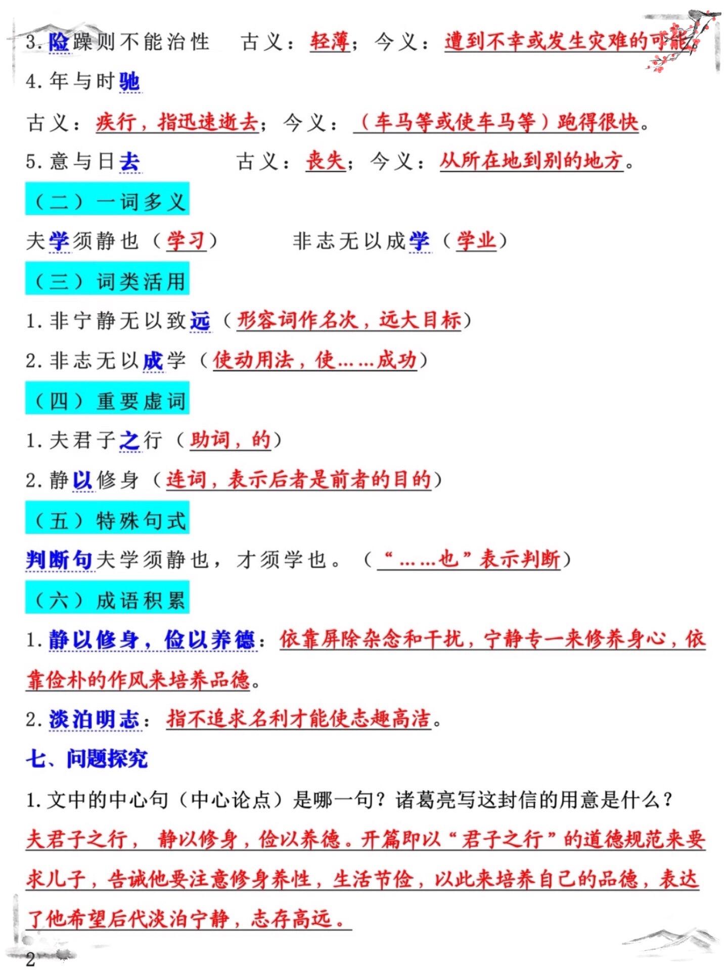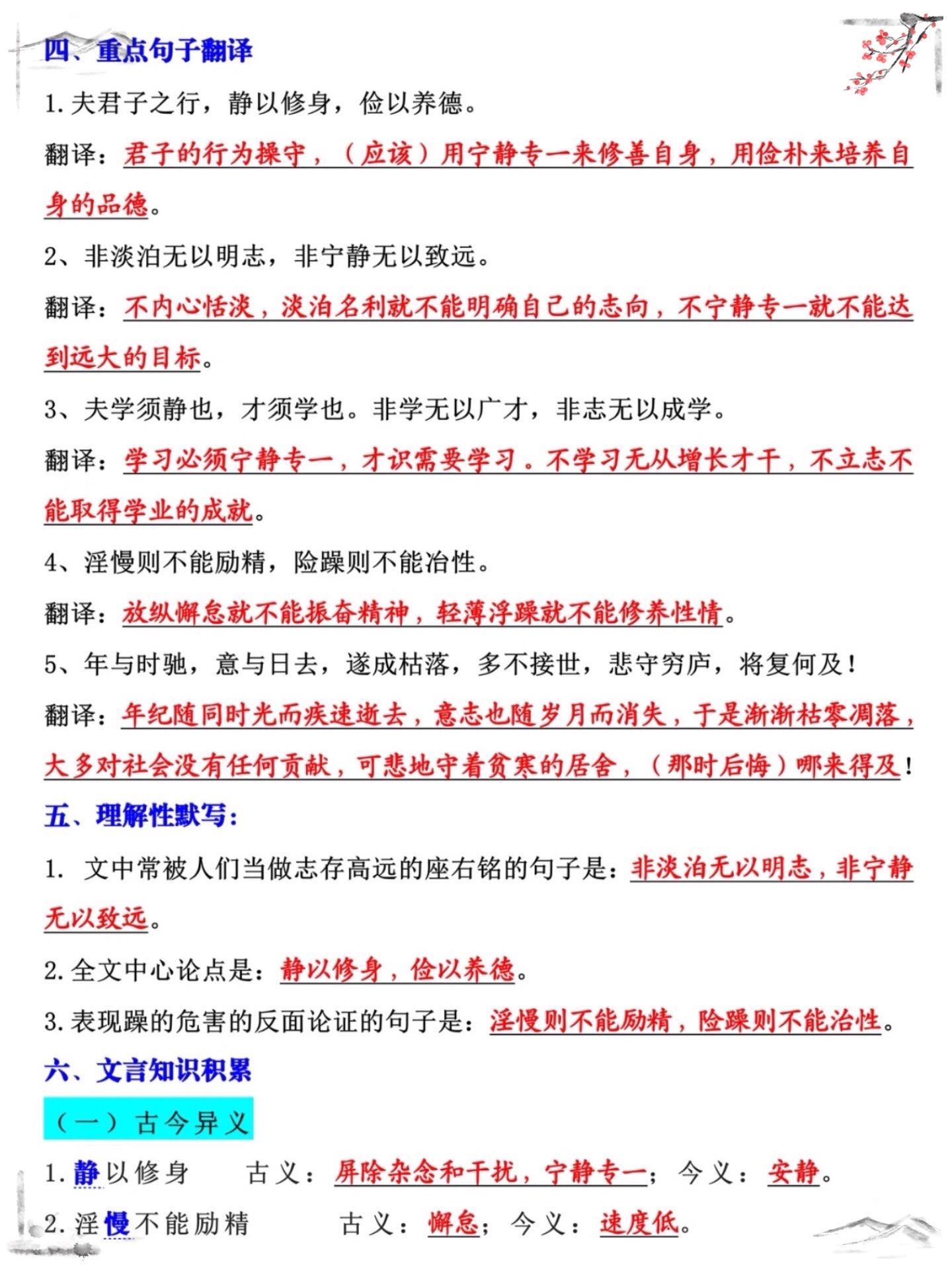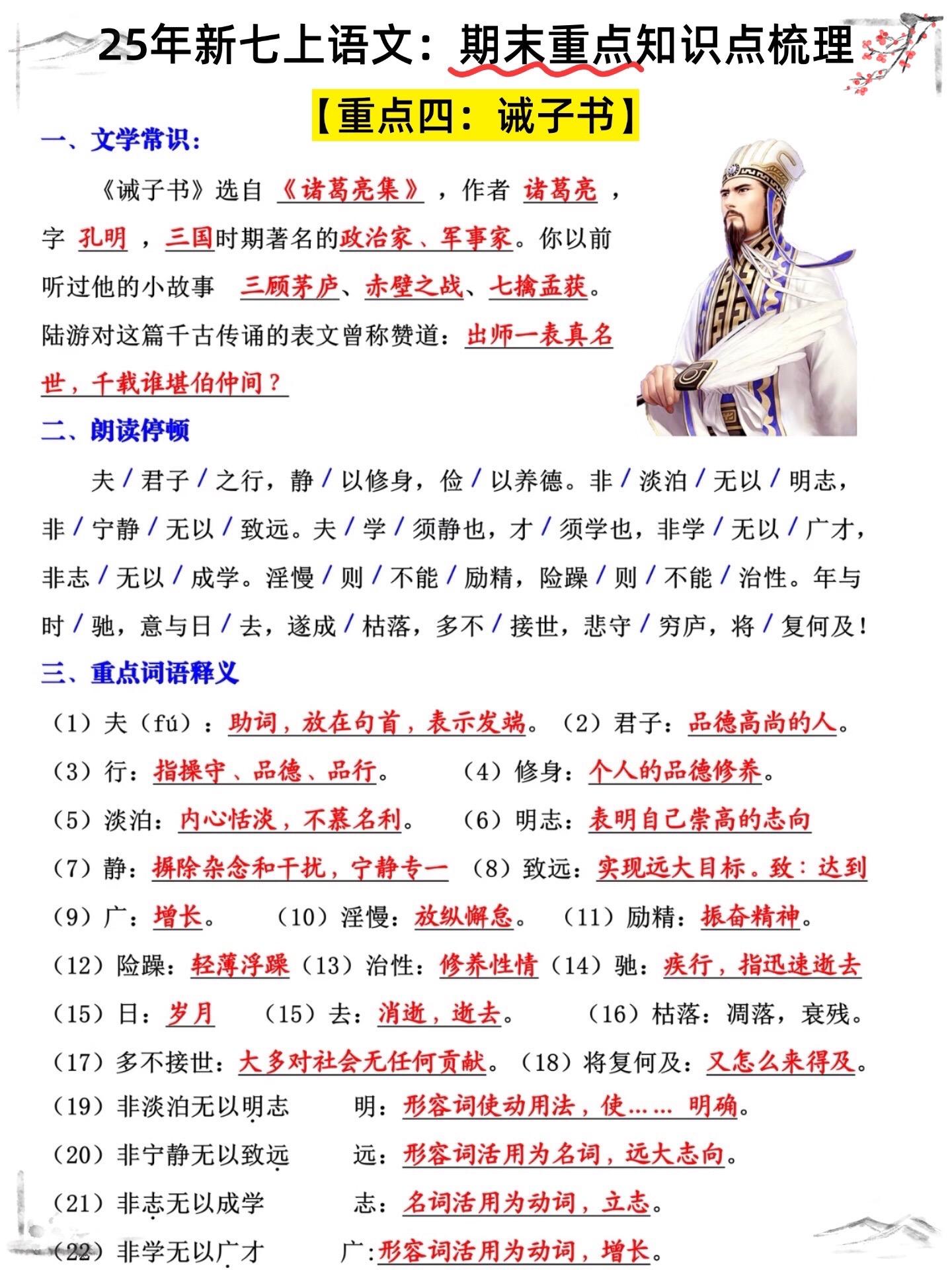 七年级上册语文期末重难点诫子书必考知识点。七年级上册诫子书老师给大家整...