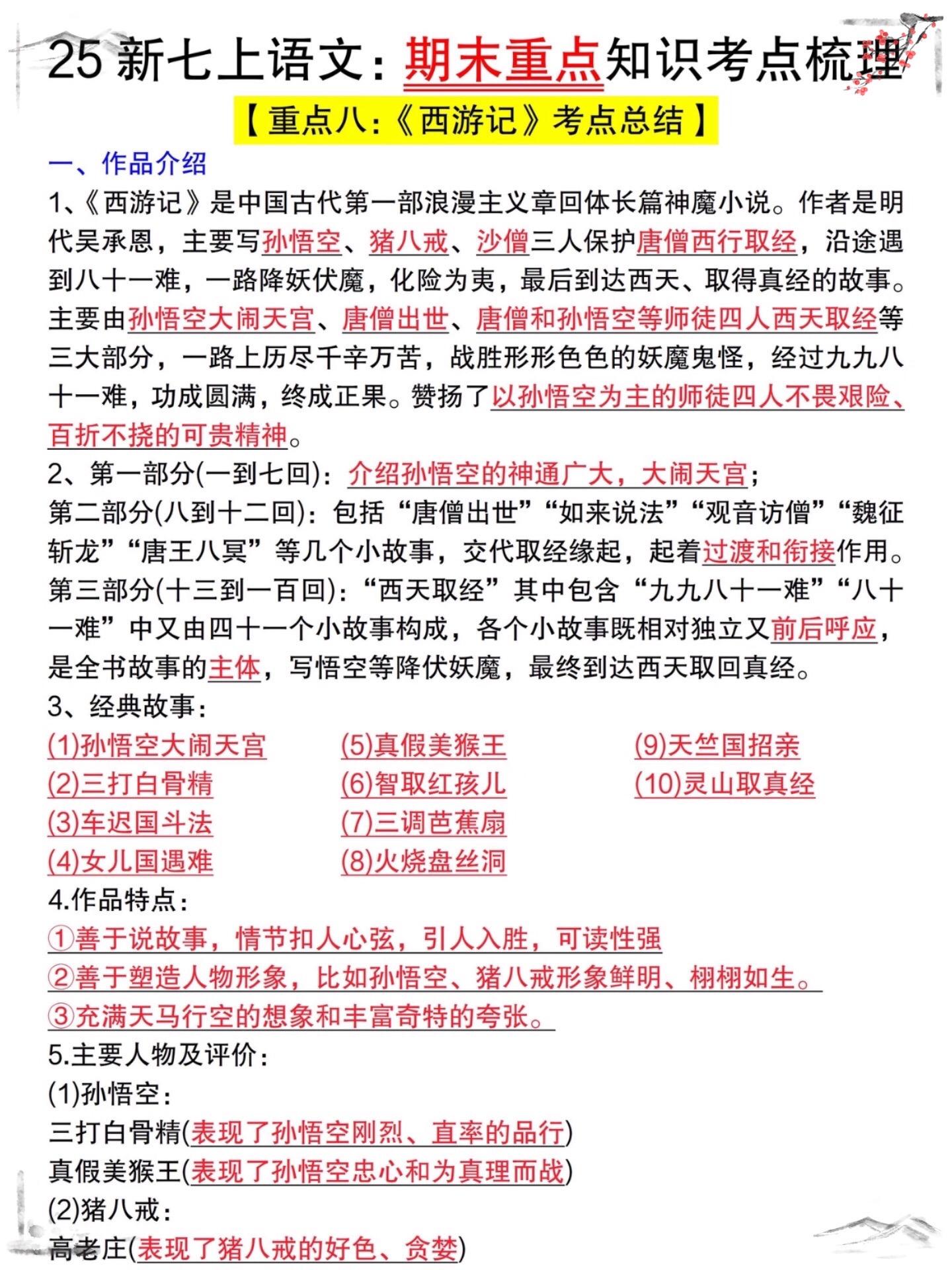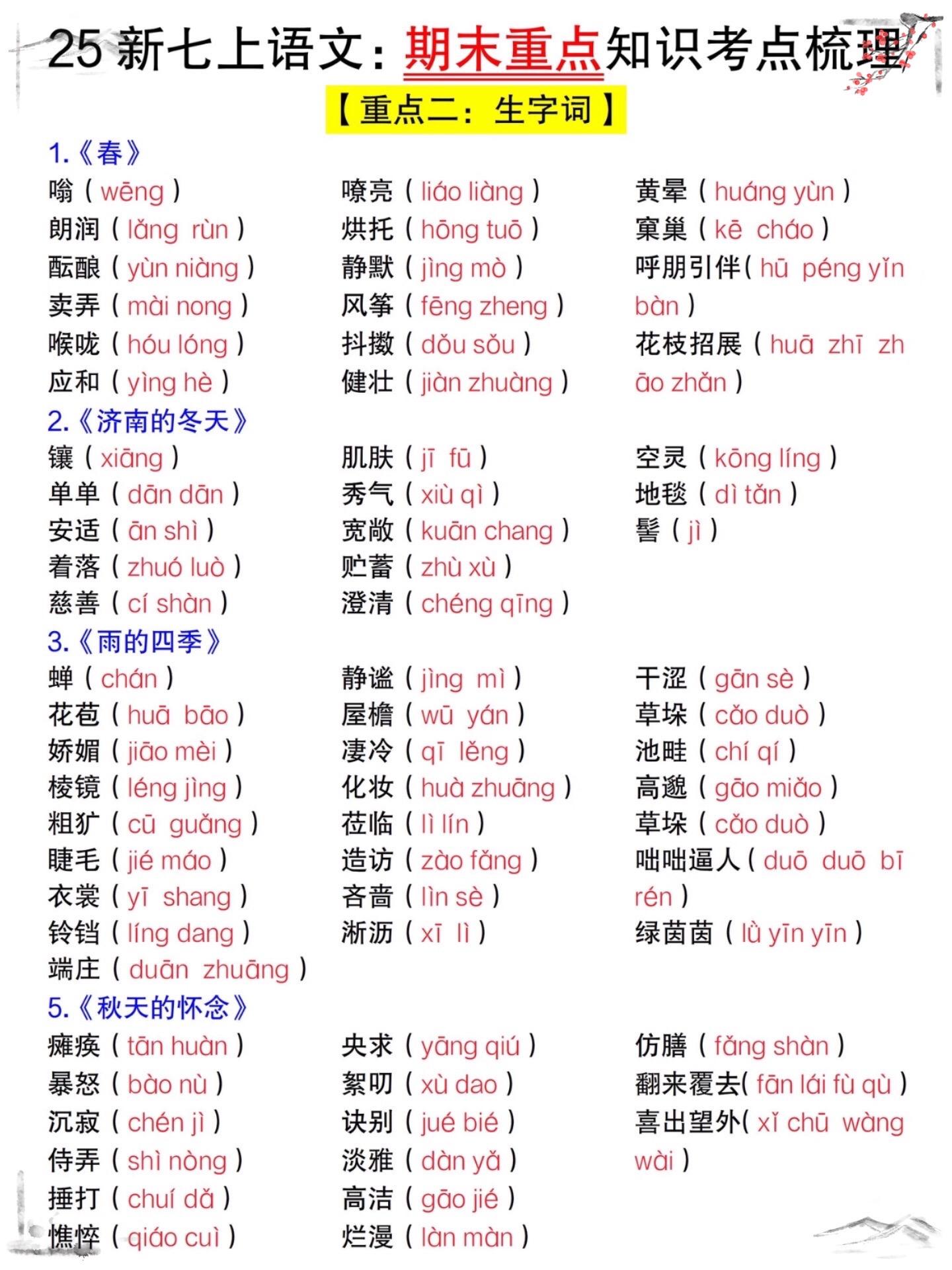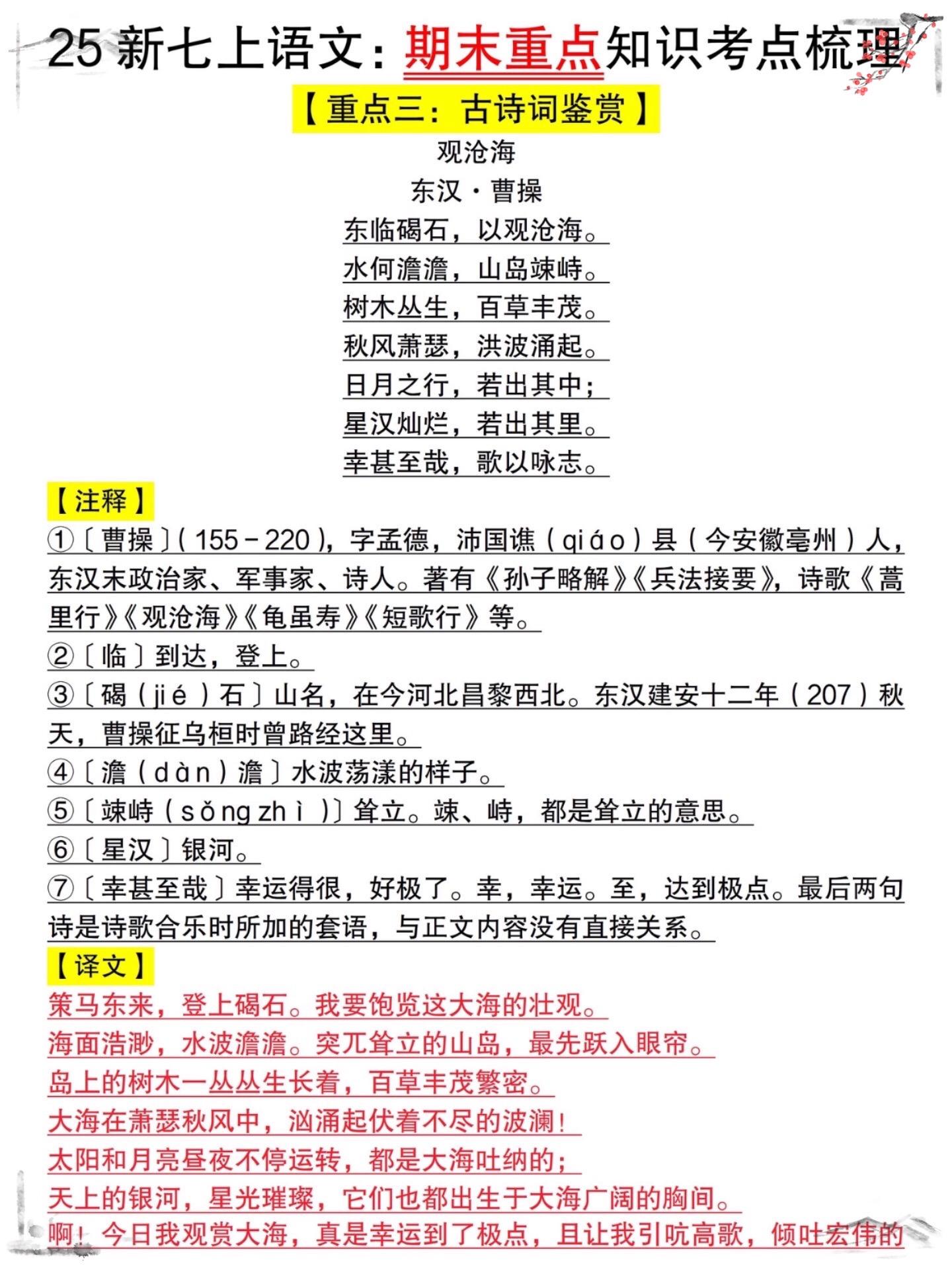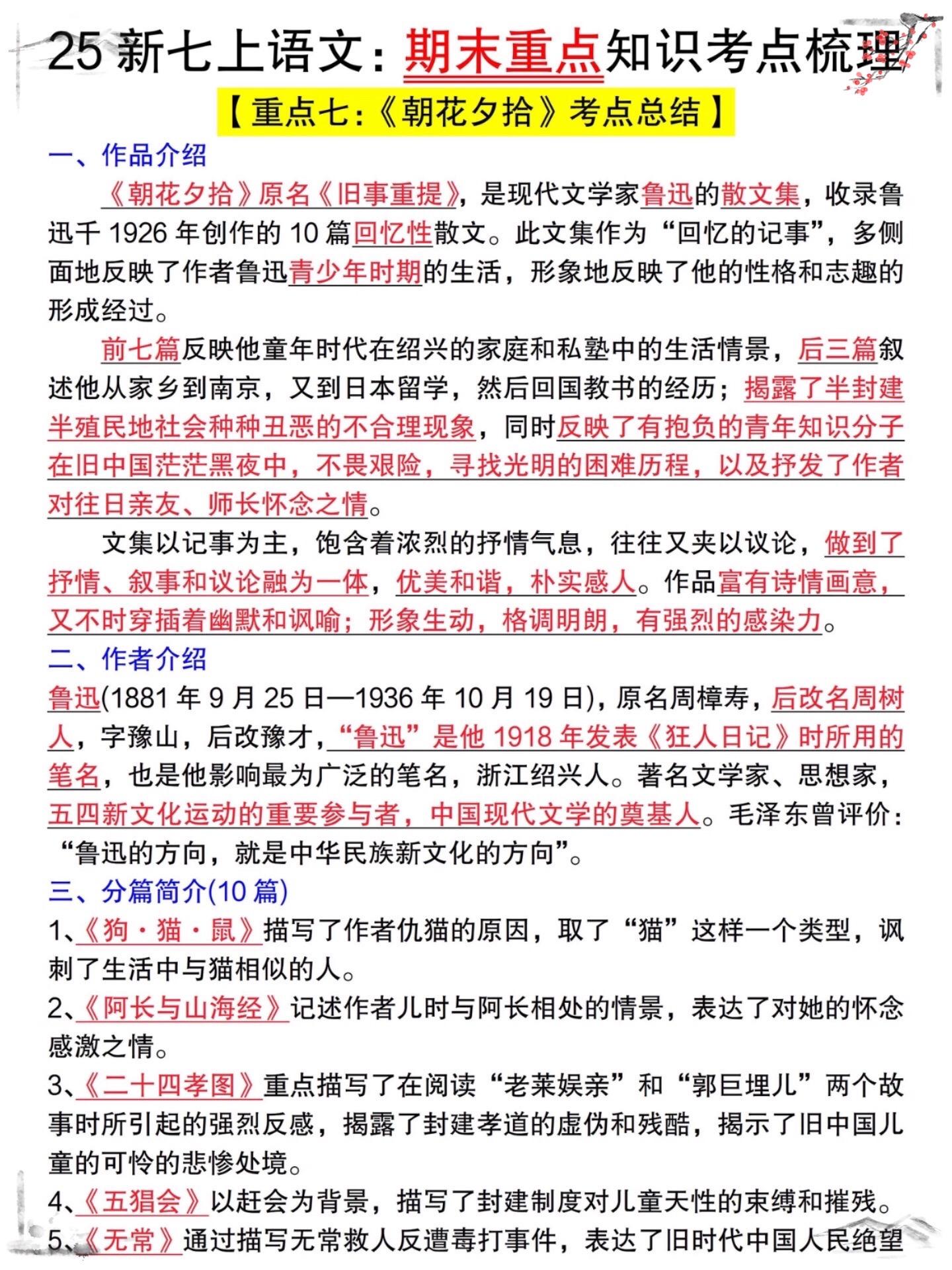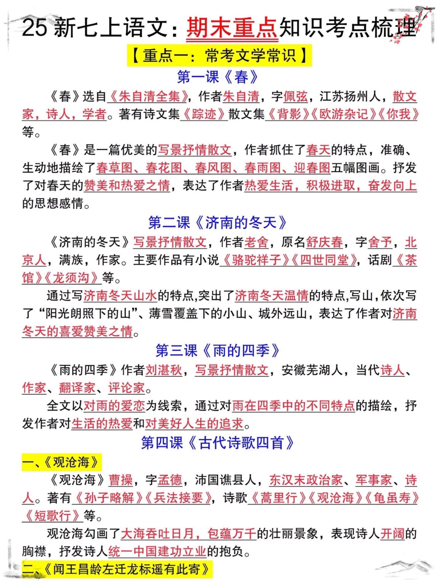 七年级上册期末考试全册复习重点必背常考。七年级上册语文知识点,老师给大...